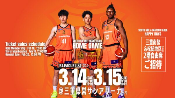 NEWS - ホームゲームイベント情報の記事一覧 - ホームゲームイベント情報 2026年03月02日 New! 2025-26ホームゲーム【第26節】TOYO TIRES プレゼンツ 3/28& 29 vs トライフープ岡山 試合概要 ホームゲームイベント情報 2026年02月09日 2025-26ホームゲーム第23節3/ 7& 8 vs東京八王子ビートレインズ 試合概要 ホームゲームイベント情報 2026年03月01日 New! 第23節ホームゲーム 「津ぅを満喫セット」が当たる抽選会開催! ホームゲームイベント情報 2026年02月25日 第23節ホームゲーム 三重県民 2階自由席無料ご招待のご案内 ホームゲームイベント情報 2026年02月15日 2025-26ホームゲーム第24節 3/14&15 vs香川ファイブアローズ 試合概要 ホームゲームイベント情報 2026年02月20日 第24節ホームゲーム 三重南勢・松紀地区に在住・在勤・在学の方 2階自由席無料ご招待のご案内 ホームゲームイベント情報 2026年01月29日 第18節〜第23節ホームゲーム 湯元 榊原舘PRESENTS ホームゲームイベント開催のご案内 ホームゲームイベント情報 2026年02月19日 第21節ホームゲーム ヴィアくんデー開催! ホームゲームイベント情報 2026年01月25日 2025-26ホームゲーム 第21節 2/21& 22 vs さいたまブロンコス 試合概要のお知らせ ホームゲームイベント情報 2026年01月29日 第21節ホームゲーム 18歳以下 2階自由席無料ご招待のご案内 ホームゲームイベント情報 2026年01月04日 2025-26ホームゲーム 第18節 1/31& 2/1 vs 徳島ガンバロウズ 試合概要のお知らせ ホームゲームイベント情報 2026年01月09日 第18節ホームゲーム 「LINEクーポンで2階自由席ALL500円」のご案内 ホームゲームイベント情報 2026年01月27日 Bリーグバレンタイン モテ男NO1決定戦 新本風河選手エントリーのお知らせ ホームゲームイベント情報 2025年12月14日 2025-26ホームゲーム 第15節 1/10& 11 vs 岐阜スゥープス 試合概要・シャトルバスのお知らせ ホームゲームイベント情報 2025年12月23日 第15節 1/10& 11 vs 岐阜スゥープス 津・松阪・伊勢市民先着200名ご招待のお知らせ ホームゲームイベント情報 2025年12月18日 第15節ホームゲーム GAME2ファンクラブ限定新年ビンゴ大会開催のお知らせ ホームゲームイベント情報 2026年01月08日 第15節ホームゲーム 1月11日(日)ハーフタイムイベントのご案内 ホームゲームイベント情報 2025年12月15日 第15節ホームゲーム 島田慎二チェアマンご来場のお知らせ ホームゲームイベント情報 2025年11月09日 2025-26ホームゲーム【第11節】12/6, 7 vs アースフレンズ東京Z 試合概要 ホームゲームイベント情報 2025年12月02日 第11節ホームゲーム 日本生命プレゼンツ12/7(日)車椅子バスケット体験のおしらせ ホームゲームイベント情報 2025年12月02日 第11節ホームゲーム GAME1ハーフタイム出演者のお知らせ ホームゲームイベント情報 2025年11月27日 第11節ホームゲーム 「伊勢志摩鳥羽うまいもん祭り」開催のお知らせ ホームゲームイベント情報 2025年12月06日 第9節11節HG 伊勢志摩鳥羽大抽選会当選番号のお知らせ ホームゲームイベント情報 2025年11月18日 第9節11節ホームゲーム 連続ご来場大抽選会のお知らせ ホームゲームイベント情報 2025年10月27日 2025-26ホームゲーム【第9節】11/22, 23 vs 東京ユナイティッドBC 試合概要 ホームゲームイベント情報 2025年11月21日 第9節第11節ホームゲーム ご来場者応援ハリセンプレゼントのお知らせ ホームゲームイベント情報 2025年11月20日 第9節ホームゲーム 緊急開催!ヴィアくんデーのお知らせ ホームゲームイベント情報 2025年11月20日 美鹿山荘×VEERTIEN 「うま塩あられ&バタピー」新発売のお知らせ ホームゲームイベント情報 2025年10月31日 第9節ホームゲーム(Vリーグ同日開催)鈴鹿市・亀山市の方ご招待のお知らせ ホームゲームイベント情報 2025年10月19日 2025-26ホームゲーム 健やか薬局プレゼンツ【第8節】11/15& 16 vs しながわシティ 試合概要 ホームゲームイベント情報 2025年11月10日 2025-26ホームゲーム【第8節】11/15& 16 vs しながわシティ イベントのお知らせ ホームゲームイベント情報 2025年10月20日 2025-26ホームゲーム 第8節健やか薬局プレゼンツゲーム 津市民ご招待のお知らせ 1 / 612345...»最後 »