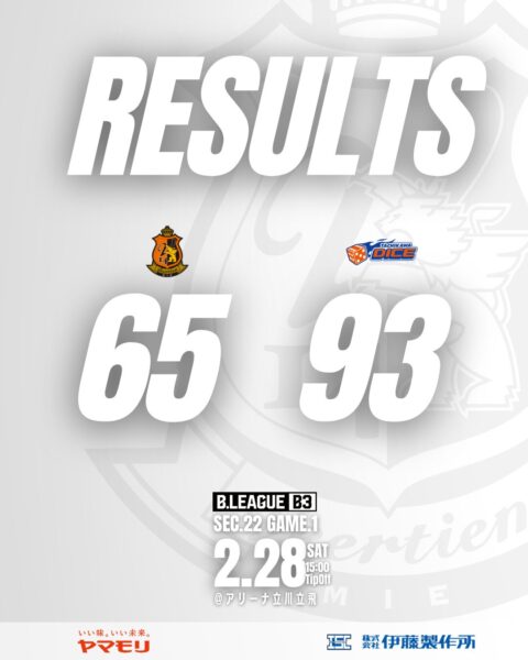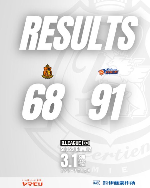 NEWS - トップチームの記事一覧 - トップチーム 2026年03月01日 New! 2025-26シーズン 第22節 AWAY GAME2 vs 立川ダイス 試合結果 トップチーム 2026年02月28日 New! 2025-26シーズン 第22節 AWAY GAME1 vs 立川ダイス 試合結果 トップチーム 2026年02月27日 New! クリストファー・オリビエ選手 2025-26シーズン契約のお知らせ トップチーム 2026年02月22日 2025-26シーズン 第21節 HOME GAME2vs さいたまブロンコス 試合結果 トップチーム 2026年02月21日 2025-26シーズン 第21節 HOME GAME1 vs さいたまブロンコス 試合結果 トップチーム 2026年02月15日 2025-26シーズン 第20節 AWAY GAME2 vs 金沢武士団 試合結果 トップチーム 2026年02月14日 2025-26シーズン 第20節 AWAY GAME1 vs 金沢武士団 試合結果 トップチーム 2026年02月08日 2025-26シーズン 第19節 AWAY GAME2 vs アースフレンズ東京Z 試合結果 トップチーム 2026年02月07日 2025-26シーズン 第19節 AWAY GAME1 vs アースフレンズ東京Z 試合結果 トップチーム 2026年02月01日 2025-26シーズン 第18節 HOME GAME2 vs 徳島ガンバロウズ 試合結果 トップチーム 2026年01月31日 2025-26シーズン 第18節 HOME GAME1 vs 徳島ガンバロウズ 試合結果 トップチーム 2026年01月18日 2025-26シーズン 第16節 AWAY GAME2 vs 山口パッツファイブ 試合結果 トップチーム 2026年01月17日 2025-26シーズン 第16節 AWAY GAME1 vs 山口パッツファイブ 試合結果 トップチーム 2026年01月11日 2025-26シーズン 第15節 HOME GAME2 vs 岐阜スゥープス 試合結果 トップチーム 2026年01月11日 2025-26シーズン 第15節 HOME GAME1 vs 岐阜スゥープス 試合結果 トップチーム 2025年12月21日 2025-26シーズン 第13節 AWAY GAME2 vs トライフープ岡山 試合結果 トップチーム 2025年12月20日 2025-26シーズン 第13節 AWAY GAME1 vs トライフープ岡山 試合結果 トップチーム 2025年12月13日 2025-26シーズン 第12節 AWAY GAME2 vs 湘南ナイティッドBC 試合結果 トップチーム 2025年12月12日 2025-26シーズン 第12節 AWAY GAME1 vs 湘南ナイティッドBC 試合結果 トップチーム 2025年12月07日 2025-26シーズン 第11節 HOME GAME2 vs アースフレンズ東京Z 試合結果 トップチーム 2025年12月06日 2025-26シーズン 第11節 HOME GAME1 vs アースフレンズ東京Z 試合結果 トップチーム 2025年12月05日 佐野 悠星 選手 2025-26シーズン契約のお知らせ トップチーム 2025年11月30日 2025-26シーズン 第10節 AWAY GAME2 vs さいたまブロンコス 試合結果 トップチーム 2025年11月29日 2025-26シーズン 第10節 AWAY GAME1 vs さいたまブロンコス 試合結果 トップチーム 2025年11月22日 2025-26シーズン 第9節 HOME GAME1 vs 東京ユナイティッドBC 試合結果 トップチーム 2025年11月23日 2025-26シーズン 第9節 HOME GAME2 vs 東京ユナイティッドBC 試合結果 トップチーム 2025年11月16日 2025-26シーズン 第8節 HOME GAME2 vs しながわシティ 試合結果 トップチーム 2025年11月15日 2025-26シーズン 第8節 HOME GAME1 vs しながわシティ 試合結果 トップチーム 2025年11月09日 2025-26シーズン 第7節 AWAY GAME2 vs 八王子ビートレインズ 試合結果 トップチーム 2025年11月08日 2025-26シーズン 第7節 AWAY GAME1 vs 八王子ビートレインズ 試合結果 トップチーム 2025年11月02日 2025-26シーズン 第6節 HOME GAME2 vs 新潟アルビレックスBB 試合結果 トップチーム 2025年11月01日 2025-26シーズン 第6節 HOME GAME1 vs 新潟アルビレックスBB 試合結果 1 / 1312345...»最後 »
