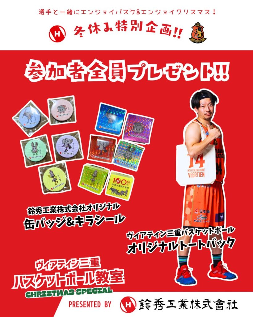 12月24日(水) 冬休み特別企画!鈴秀工業株式会社プレゼンツバスケットボール教室〜クリスマススペシャル〜 開催!