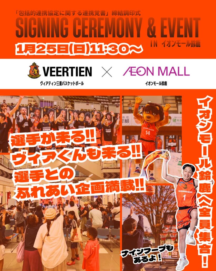 1月25日(日)にイオンモール鈴鹿にて弊クラブ代表後藤大介及び選手が参加し公開調印式及び、選手との交流イベントを開催いたします。