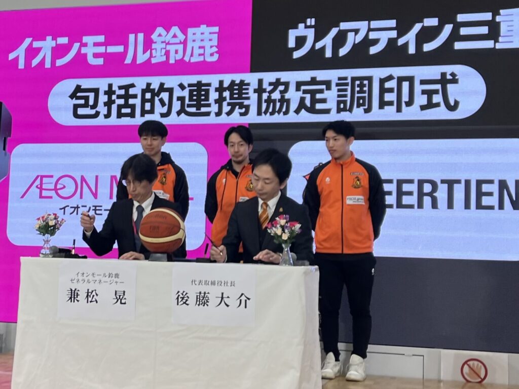 1月25日(日)にイオンモール鈴鹿にてイオンモール鈴鹿ゼネラルマネージャー兼松晃様と、弊クラブ代表後藤大介及び選手が参加し公開調印式を行い「包括的連携協定」を締結いたしました。