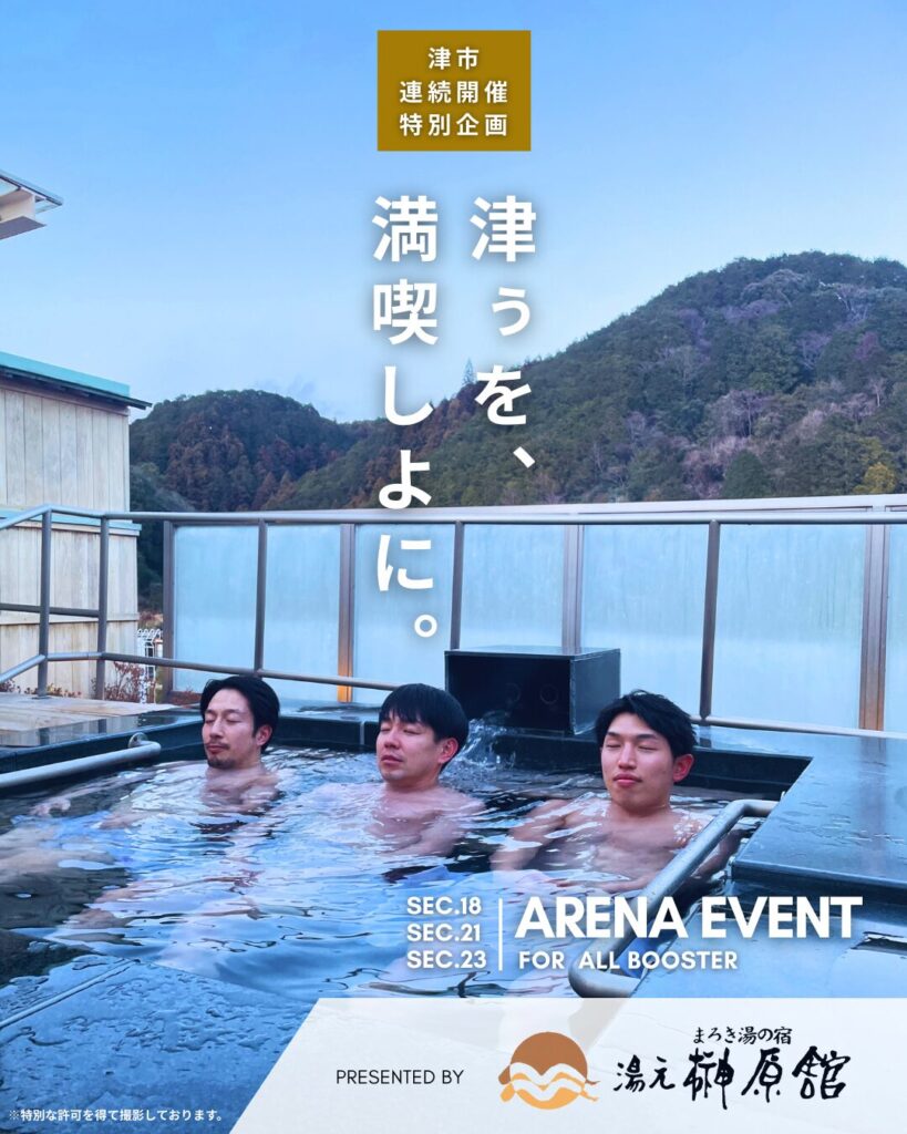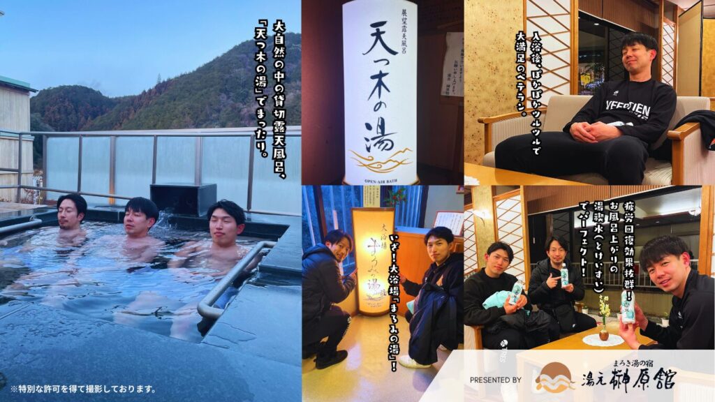 この度、新規パートナー契約を締結いたしました、「湯元 榊原舘」様とのコラボ企画として、榊原温泉入浴券をGETできるホームゲームイベントを開催いたします!選手からも大好評!美肌効果や疲労回復効果も高い、「まろきの湯」。津市連続開催のこの機会に、三重が誇る歴史ある榊原温泉へ是非お立ち寄りいただき、体も心もHOTに試合観戦にのぞみましょう!