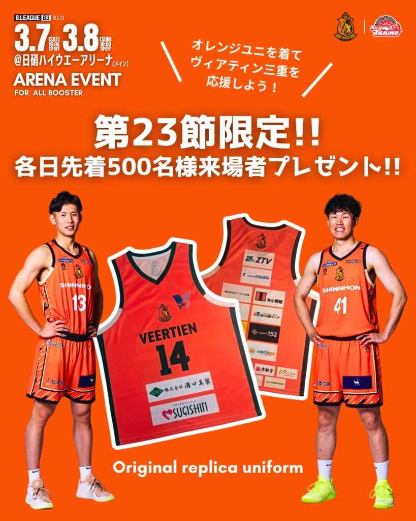 3月7日、8日両日先着500名様にオリジナルレプリカユニフォームをプレゼントします。