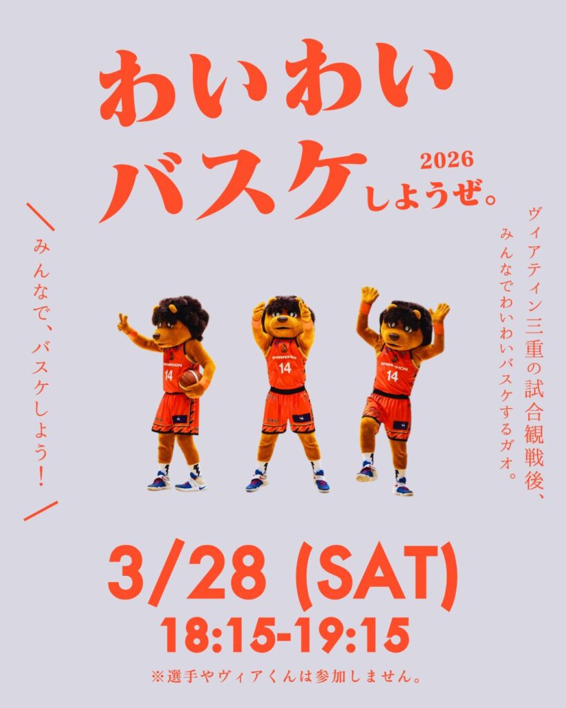 毎年恒例となってまいりました、ヴィアティン三重試合終了後、みんなでわいわいバスケしようぜ、通称「わいわいバスケ」を開催いたします。