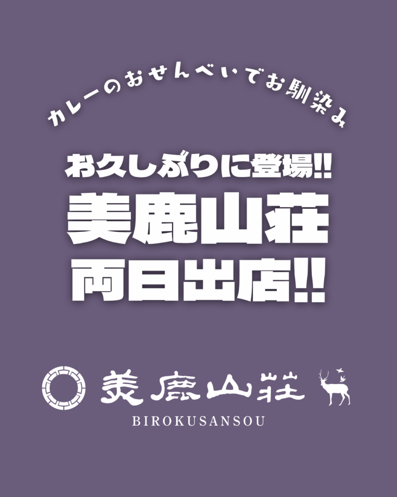 カレーのおせんべいでお馴染みの、美鹿山荘売店出店します!