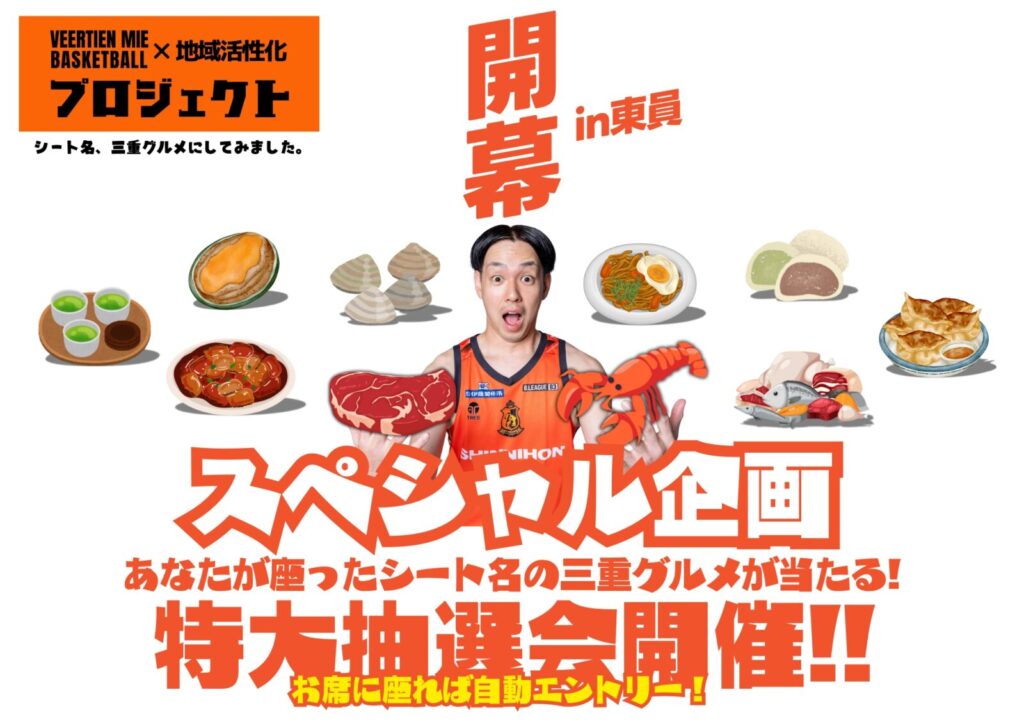 第3節10月11日(土)12日(日)両日におきまして、座った―シート名の三重グルメが当たる抽選会を開催いたします。