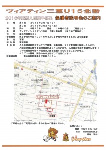 【U15お知らせ】2016年度新入団選手募集 保護者説明会
