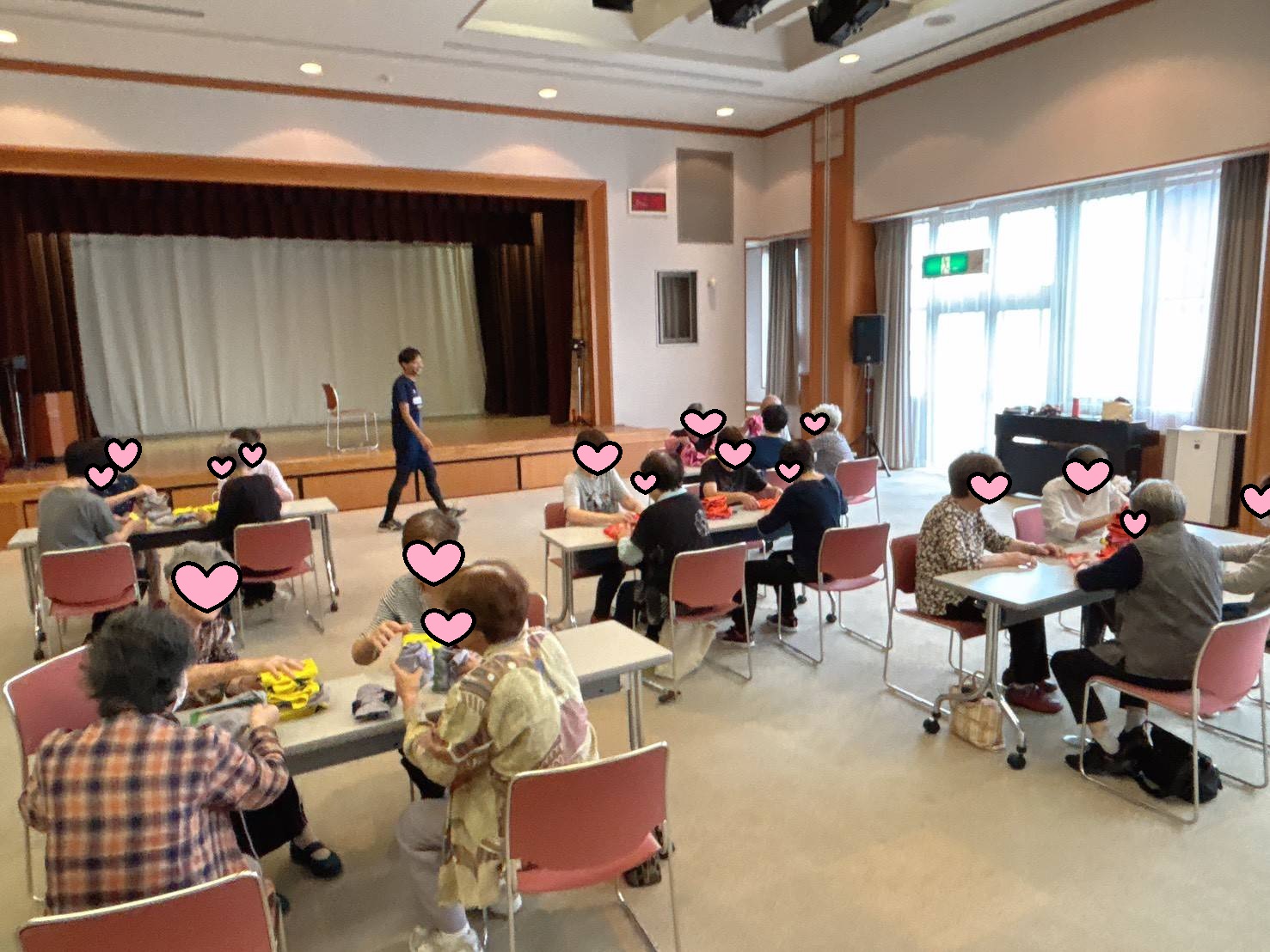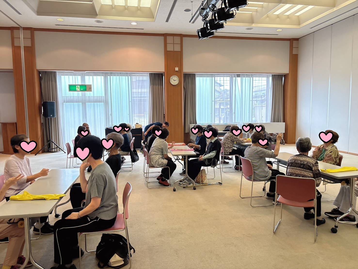 そこから本題のビブスを使ったレクリエーションへ。じゃんけんの結果で早取りをしたり、チームで協力して高く積み上げたり… レクリエーション要素強めでしたが、チームで競い、また協力することで、単純に身体を動かす以上に楽しそうに取り組んでいただくことができました。お家で・お一人で黙々と身体を動かすよりもずっと効率よく、なにより楽しそうに動けて満足いただけたように思います。