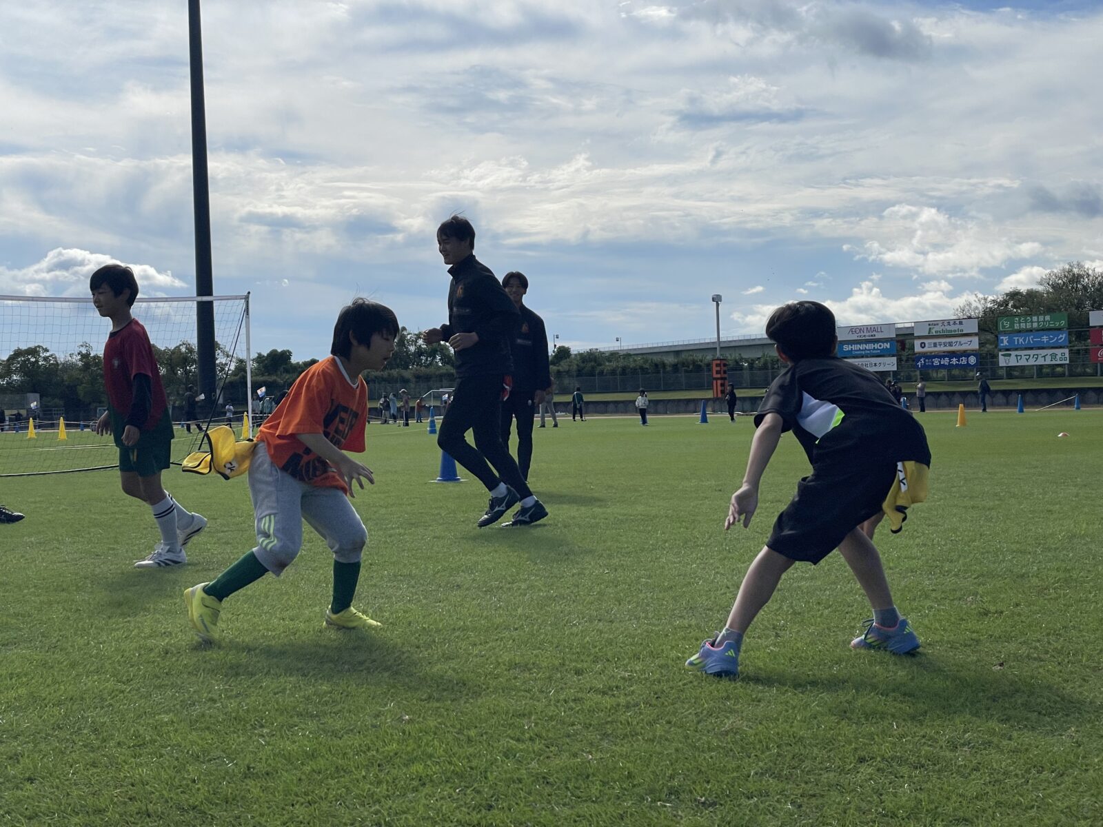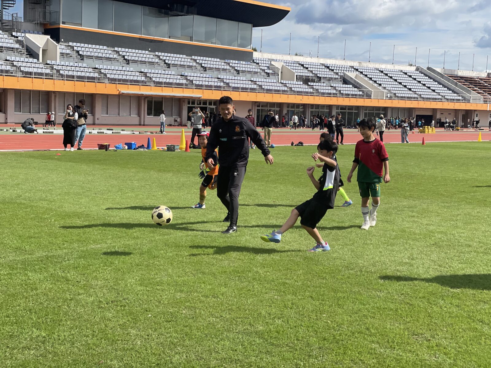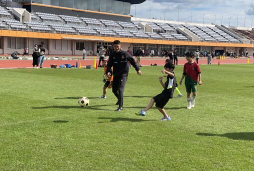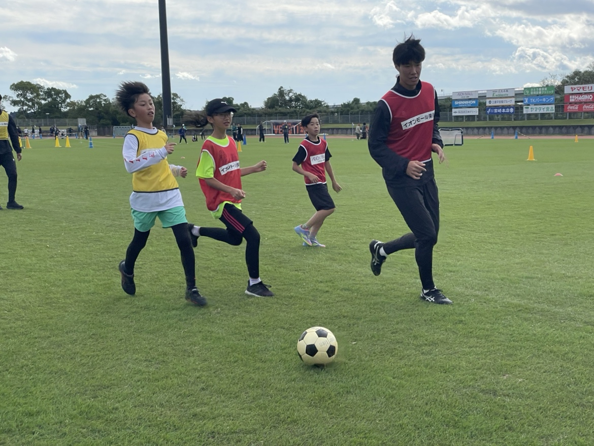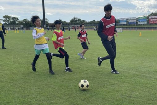 ヴィアティン三重はサッカー教室とキックターゲットを運営させていただきました。前日の雨天でグラウンドコンディションが心配されましたが、ピッチの状態も回復し子どもたちと一緒に楽しく身体を動かしました。