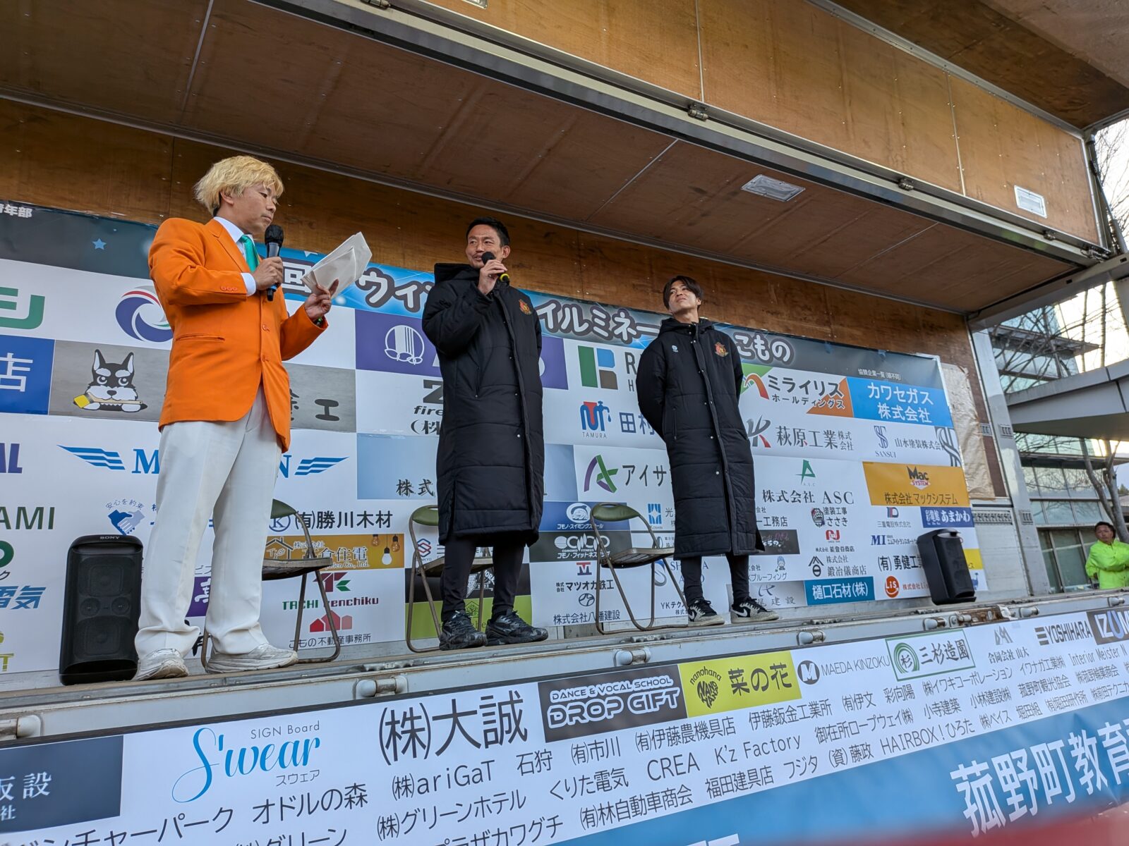 ヴィアティン三重はキックターゲットの実施や、選手のトークショーに参加させていただきました。トークショーでは谷奥選手・松浦選手がステージに登壇し、集まった子どもたちからの質問に答えました。