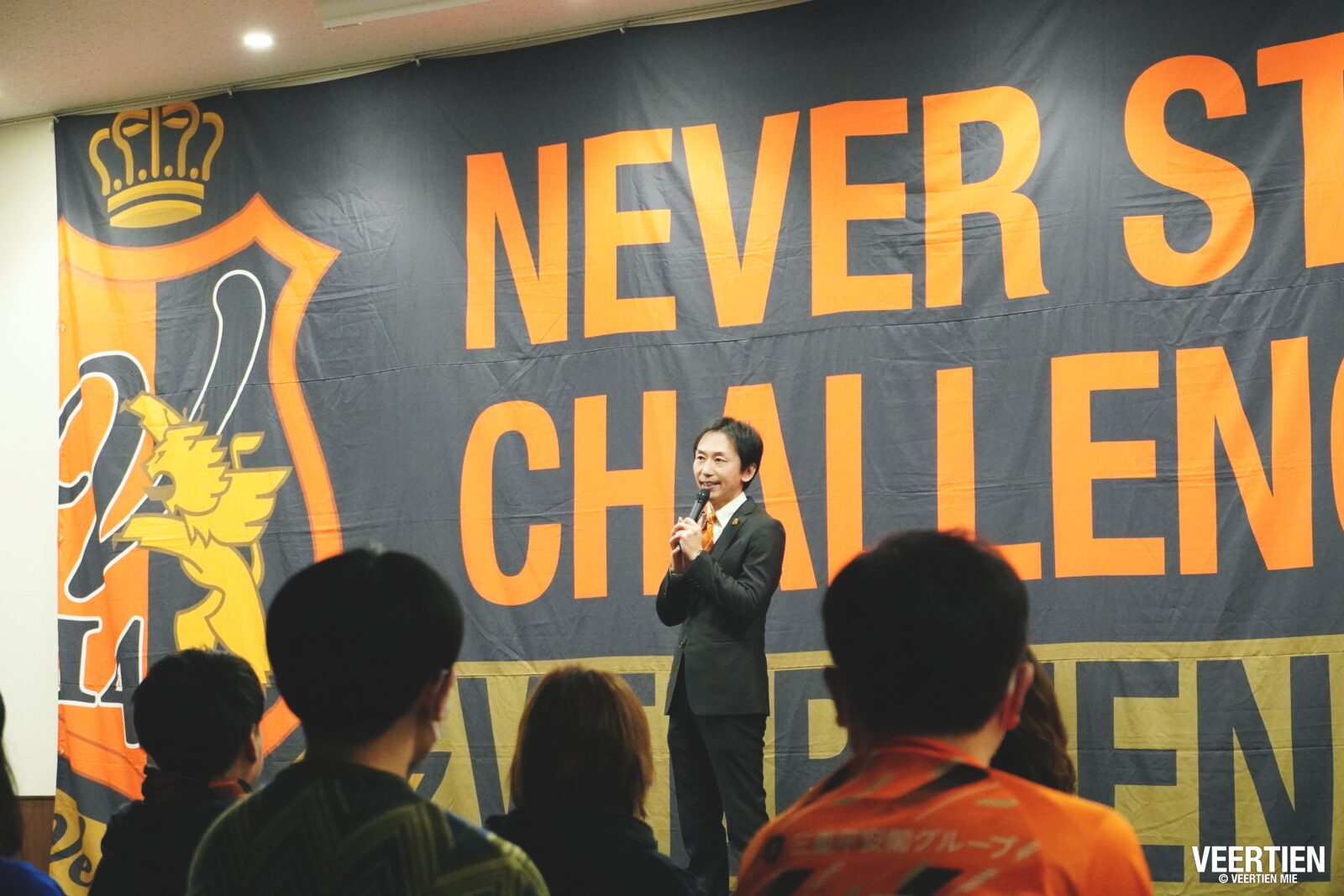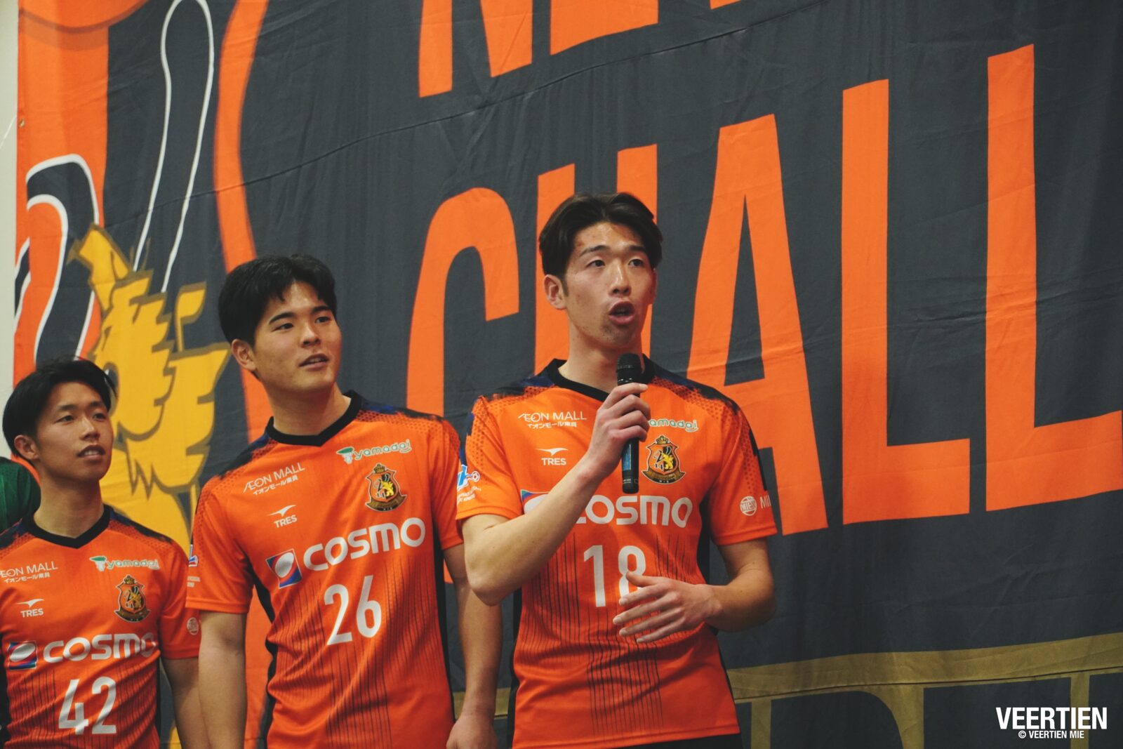 「全員が一戦一戦に100%取り組める選手たちが集まってくれました。一戦一戦、勝利のために闘うことを約束します。それだけではなく、ここに来てる選手たちは年齢関係なくすごく伸びしろがある選手たちです。もっともっと飛躍して、躍動してくれる選手たちです。一戦目より二戦目、二戦目より三戦目と、選手が躍動して実力をあげていって、最後にはみんなで笑って過ごせるようなシーズンにしますので、ぜひ名前が変わったBASICスタジアム東員へ足を運んでください。今日はありがとうございました。」
