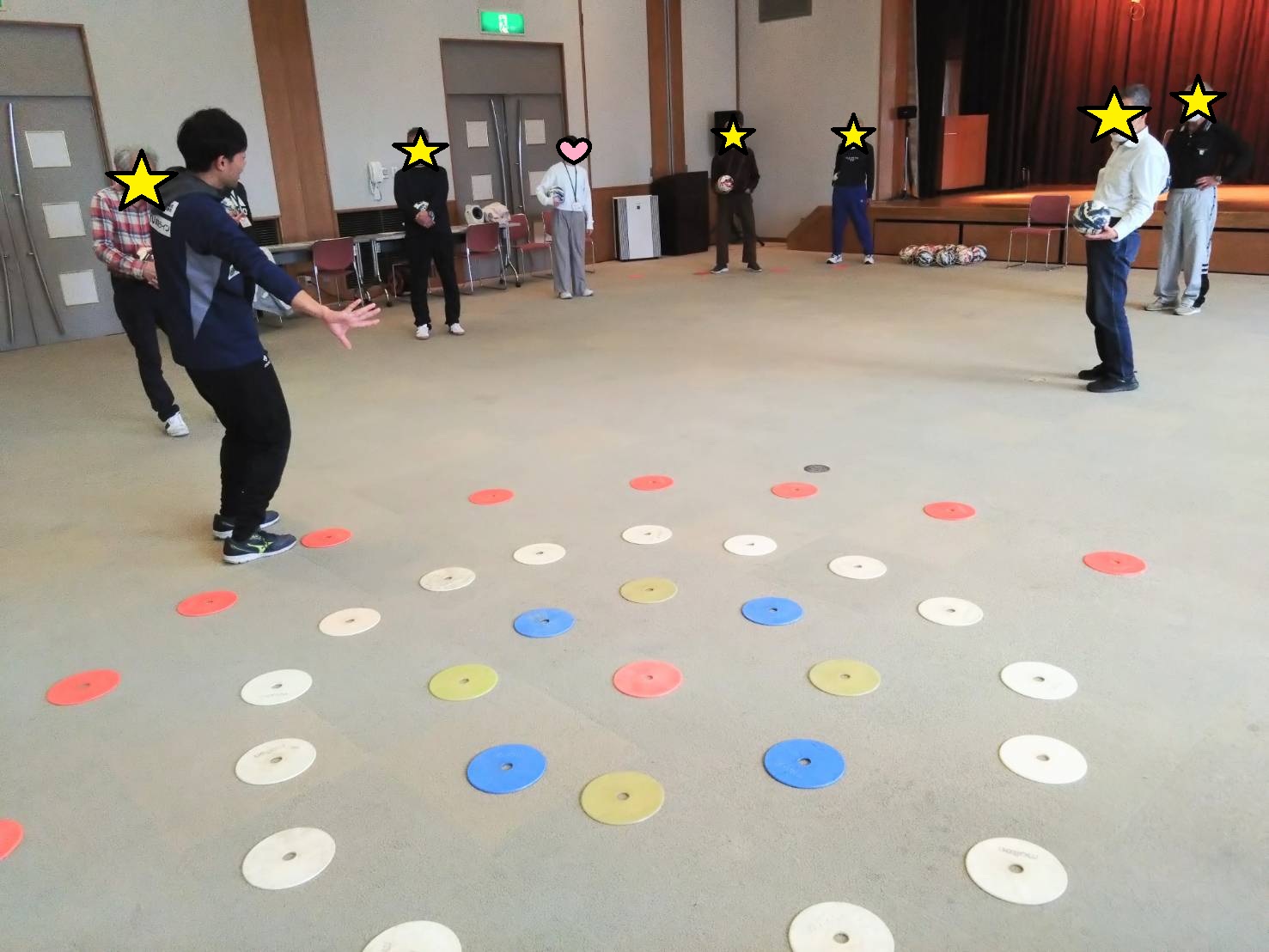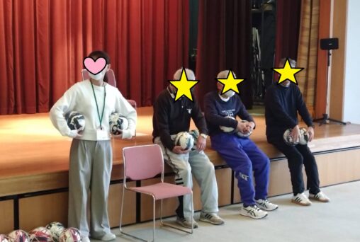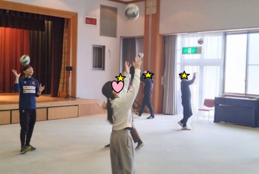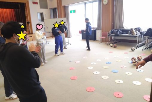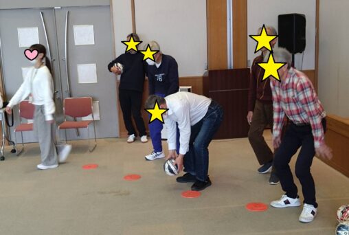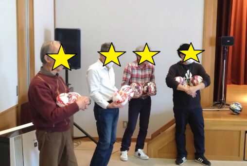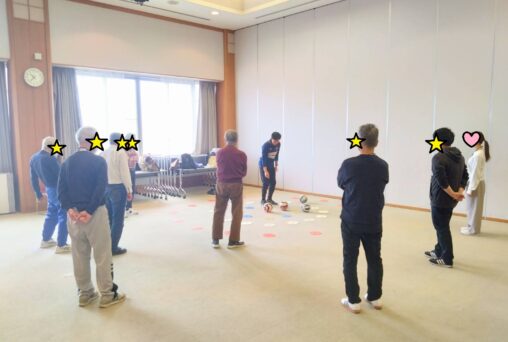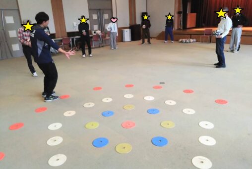 今回は冬季スポーツの祭典が開催ということで、ボールを使った「ボールカーリング」にチャレンジしていただきました。的をめがけてボールを転がし、相手のボールより中心に近づければ得点が増えるというカーリングとほぼ同じ得点計算でプレーしましたが… 単純に思えてなかなか奥深い駆け引きが必要で盛り上がりました! より中心に投げた方が良いのか、それより相手のストーン…もといボールを弾いた方が良いのか。各チーム良い駆け引きの連続で、見ているこちらも見応えがありました! スポーツの祭典本番で、トップ選手たちのプレーを見るのが今からより楽しみになりましたね。