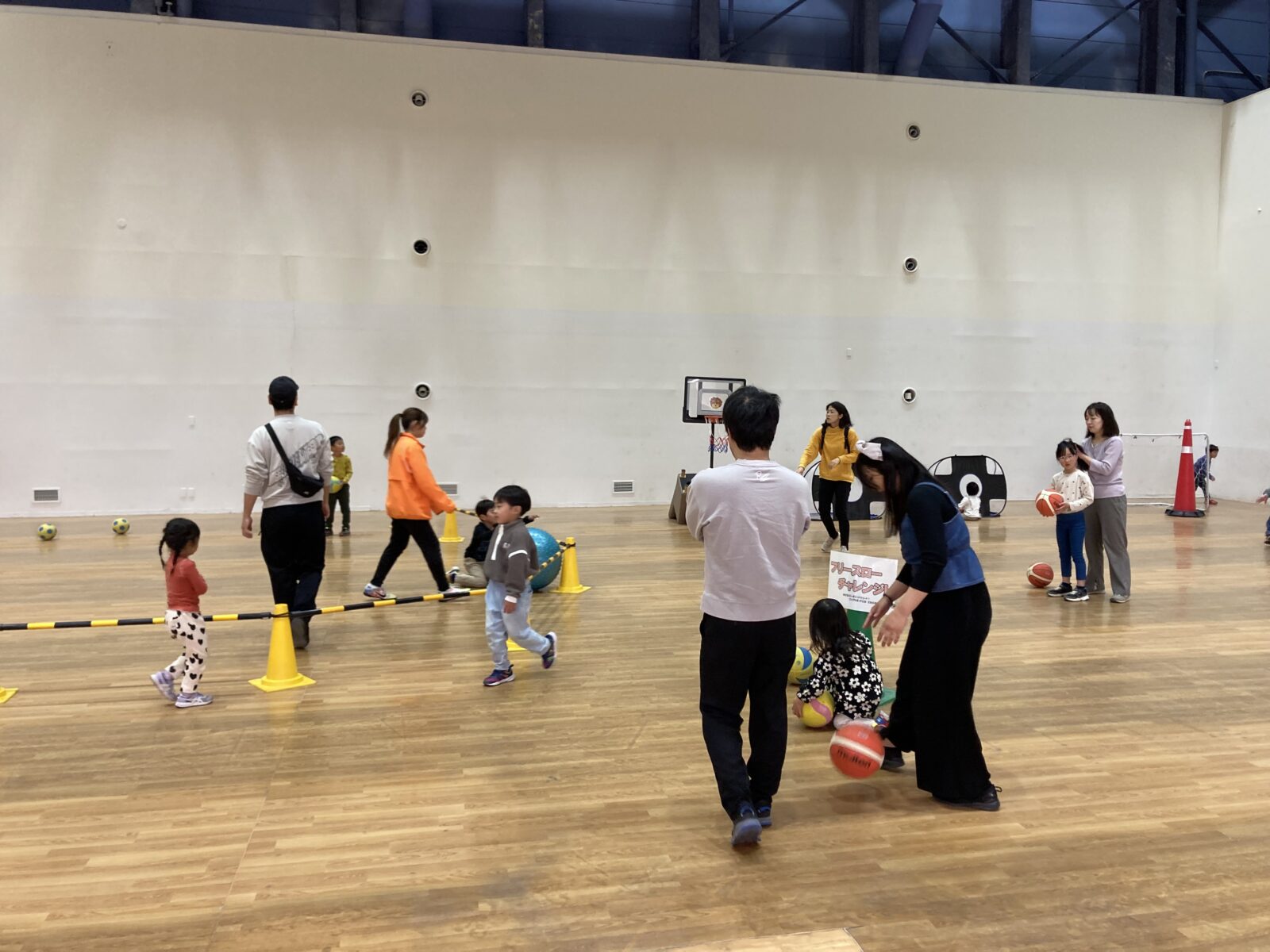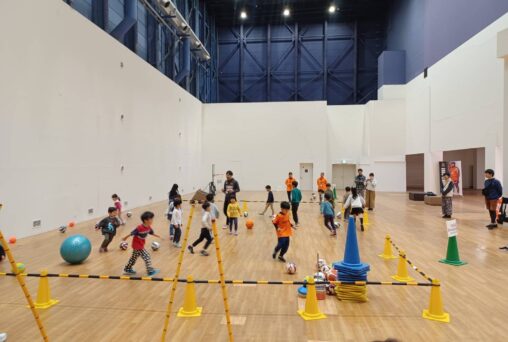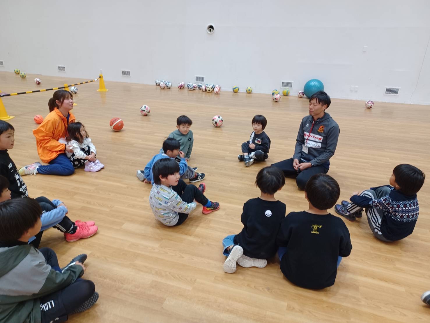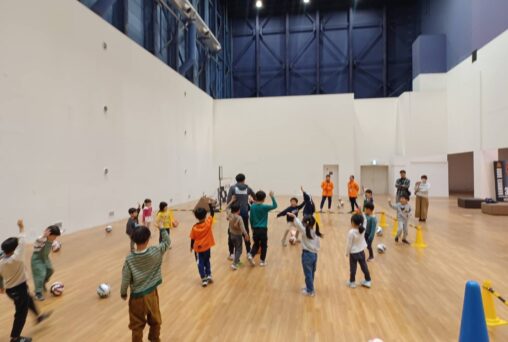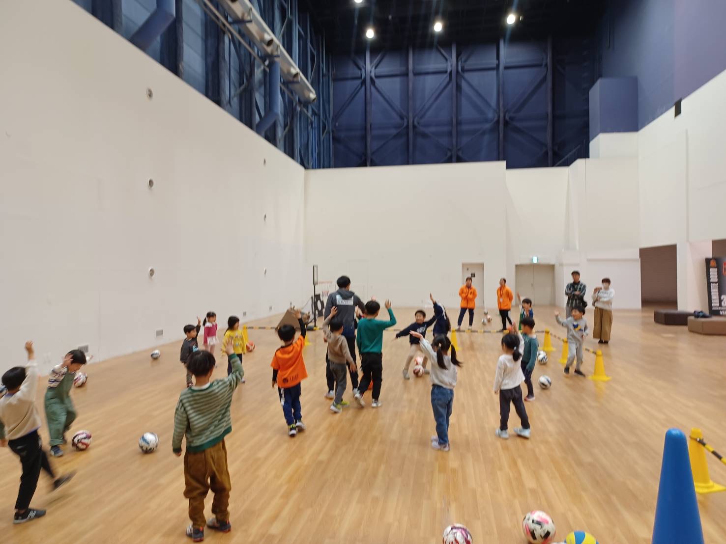 ジャンプマットで飛んだり走ったり、フリースローやPKでたくさんゴールを狙ったり… ミニ運動教室も最初は初めての「運動教室」にドキドキした子も多くいましたが、最後はみんなニコニコ元気に取り組んでくれました。