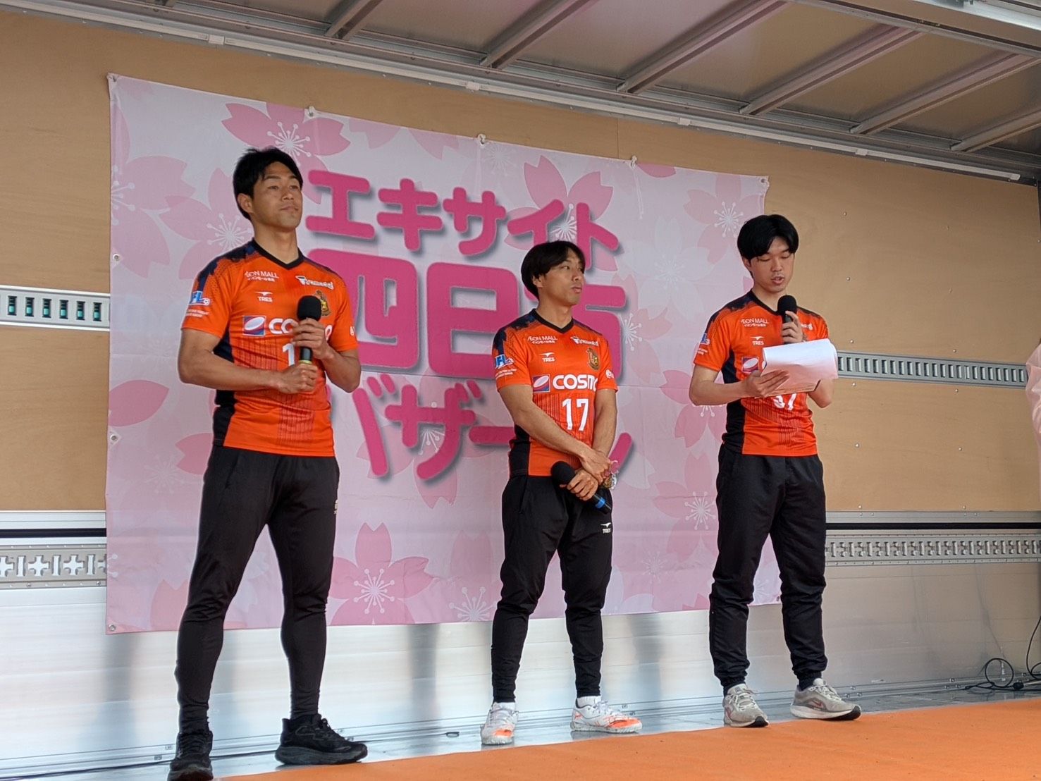 ヴィアティン三重トップチームより、#11 山田 晋平選手、#17 小笹 響平選手、#37 池田 虎弘選手の3名が参加し、三滝通りのイベントステージに登壇。試合告知やジャンケン大会を実施させていただきました!