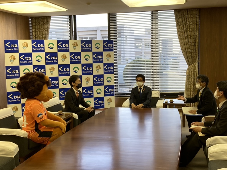 11月24日にに執り行われた贈呈式では、伊藤 徳宇桑名市長宛に弊クラブの後藤 大介代表取締役社長より「とびだしヴィアくん」をお渡しし、伊藤市長からは感謝のメッセージと共に今後のクラブの発展を願う温かいお言葉も頂戴いたしました。