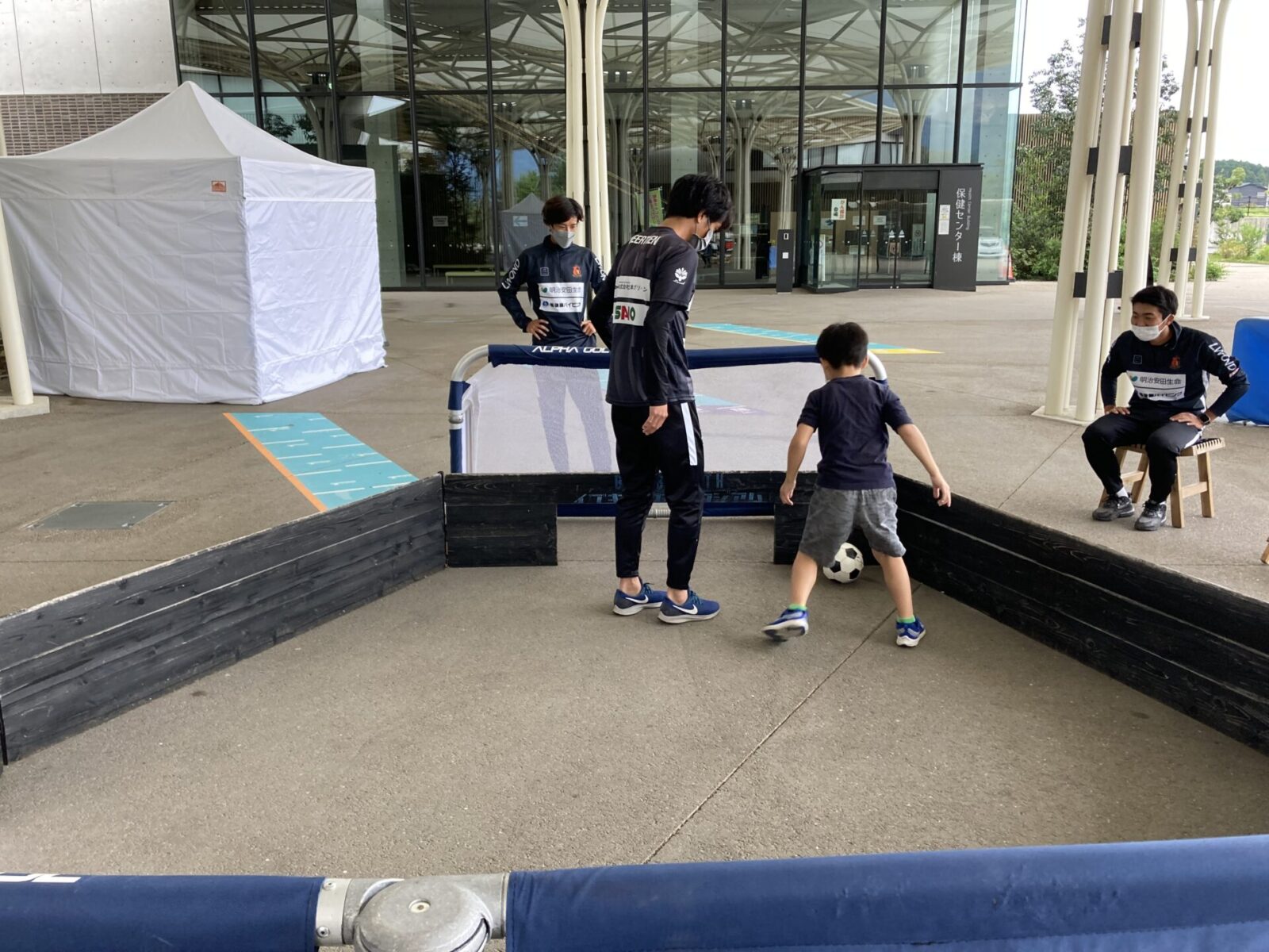 ストリートサッカーでは選手との対決も行われ、子どもたちの、選手から必死にボールを奪おうと頑張っている姿、ゴールが決まり喜ぶ姿が印象的でした!一度体験した子のほとんどは「もう一回やりたい!」と何度も挑戦しに来てくれました!
