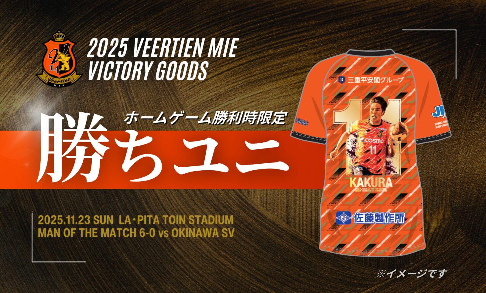 2025シーズンはホームゲーム勝利時、試合終了後に発表される「マン・オブ・ザ・マッチ(MOM)」(”その試合で最も活躍した選手”)に選ばれた選手のプレー写真を使用した特別なユニフォーム「勝ちユニ」を販売いたします!