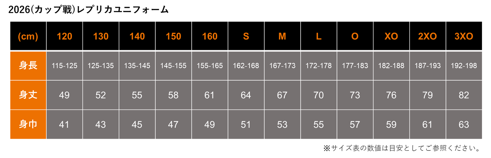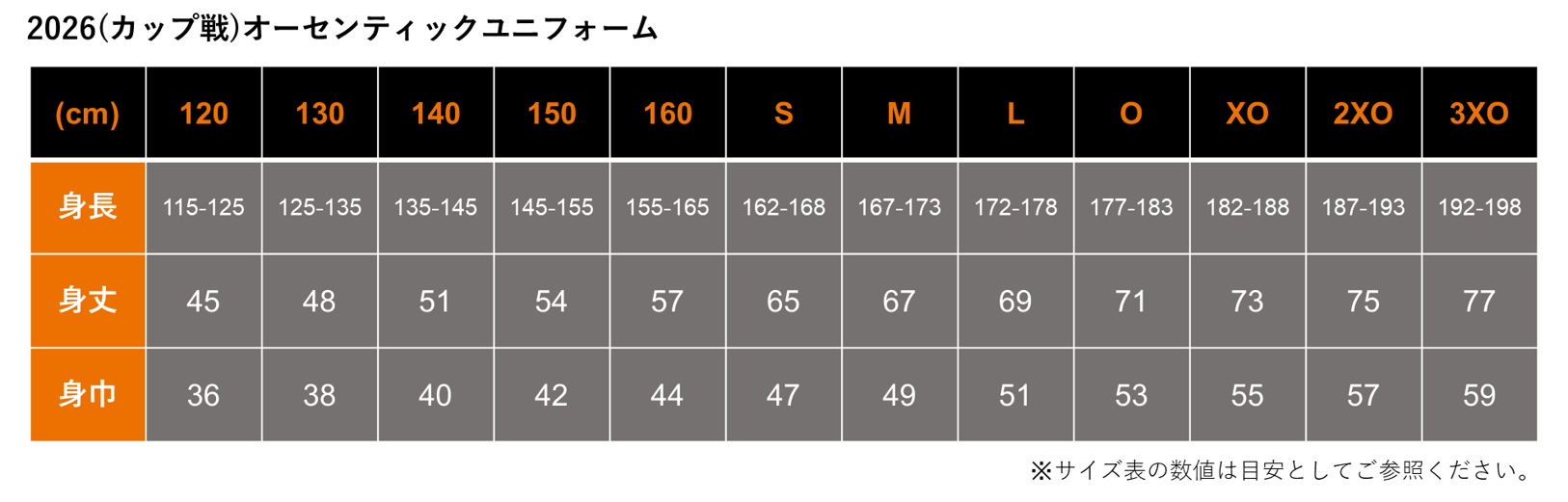 取扱いサイズ:120/130/140/150/160/S/M/L/O/2XO/3XO