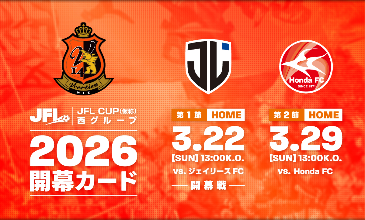 2026年のシーズン移行期間中に行われる「JFL CUP(仮称)」の開幕カードが発表されましたので、お知らせいたします。