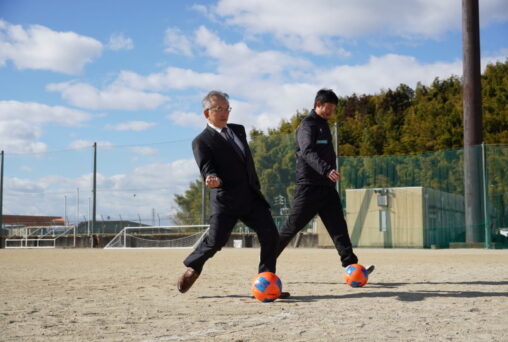 ゴールを設置していただく朝日町町民スポーツ施設 小運動場は、ヴィアティン三重のサッカースクール・アカデミーも練習拠点としても利用させていただいているグラウンドです。日頃の感謝や地域の子どもたち・一般利用者の皆様にも、より良い環境で運動・スポーツを楽しんでいただける一助になればという想いから寄贈する運びとなりました。寄贈式では、矢野町長、弊クラブ代表の後藤よりご挨拶をさせていただき、最後には矢野町長とアカデミーの谷奥コーチによるキックオフセレモニーを実施いたしました。