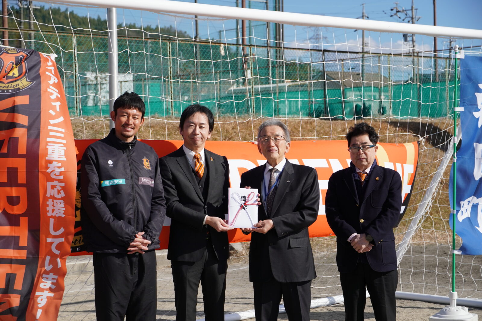 この度、ヴィアティン三重は朝日町へ練習用ゴールを寄贈させていただくこととなり、2月3日(火)に朝日町町民スポーツ施設 小運動場で寄贈式を執り行いましたので、お知らせいたします。