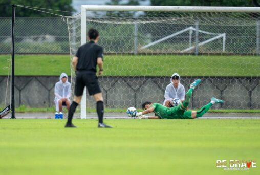 雨でスリッピーなピッチ状況&手前でバウンドする鋭いシュートだったが、これを森がファインセーブ🙌