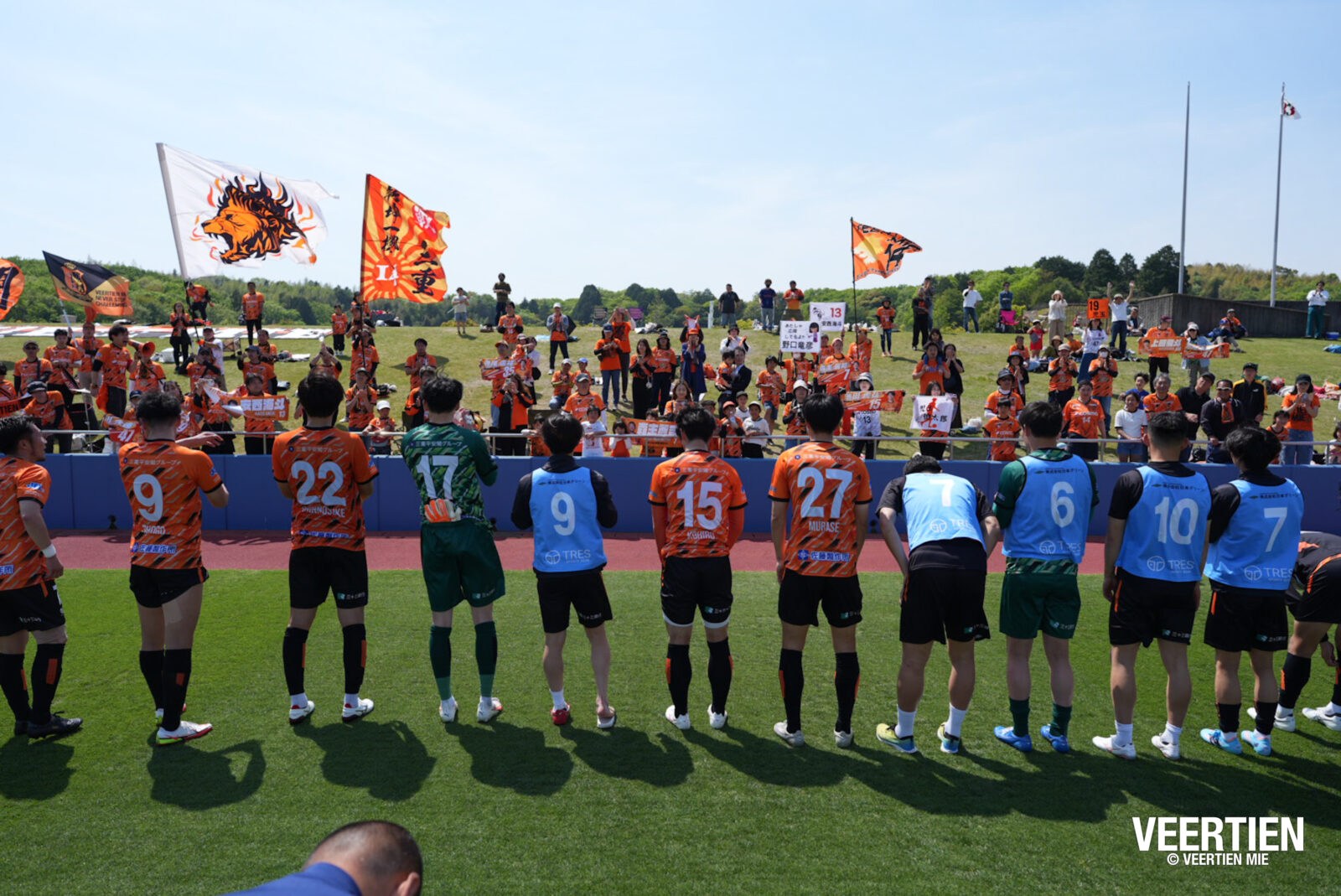 ほんとに今日もありがとうございました。違う大会で、会場が変わっても、スタジアムが開門した瞬間、オレンジ色のユニフォームとオレンジ色の旗が続々と入ってくるのを遠目で見ながら、ほんとに頼もしいなと。コーチともその話をしながら、感謝していました。まず1つ目ですけど、三重県の地で喜び合えたのを嬉しく思います。
