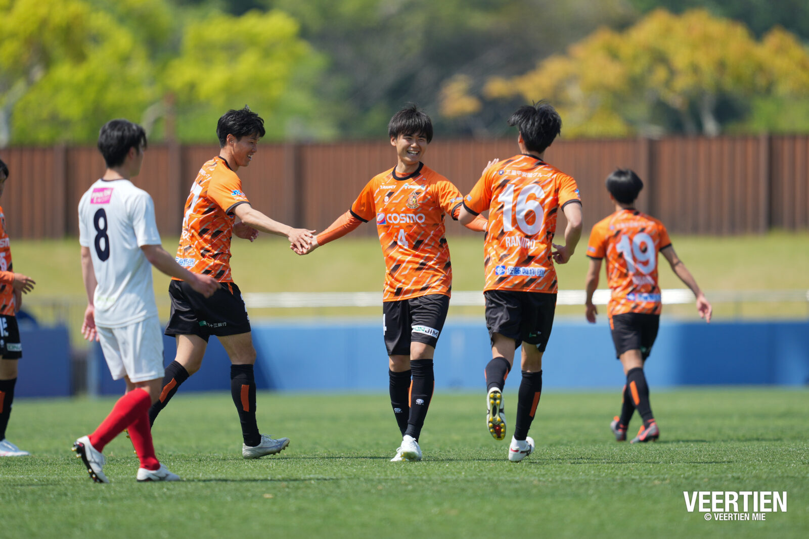 この展開で大学生に食われるチームは結構あると思います。実際にJFLの他のチームが、他県でも起こってることですし。その中で、90分で勝利する目的は持ってやったんですけど、そこは叶わなず。それが叶わなかったが故に、足をつったりしたことで普段と違うポジションをする選手がいたり、またその厳しいシチュエーションで、みんなで声を掛け合って連携を取らないといけない場面というのが出たので、貴重な経験ができたと思います。あとは、その中で四日市大の方が決定機が多かったんでしょうけど、試合は勝ち負けでしかないので、まずは彼らの攻撃をしっかりと凌いだこと。そして(失点を)0で凌げば、試合が終わる瞬間まで勝つ可能性はあるので、まさにその状況を続けた、耐えたからこそ、自分たちの今季しっかりと準備しているセットプレーでの得点だったので、その2つが繋がったのが良かったと思います。