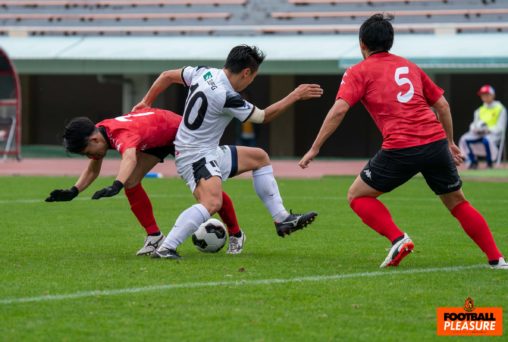第30節終了の笛が鳴り響いた。ピッチに膝を付く選手たち、悔しさが隠せない。アウェー宮崎での今期最終節はホンダロックSCを相手にドローで終了。勝点1を得て最終成績10位でJFL2019シーズンは幕を閉じた。