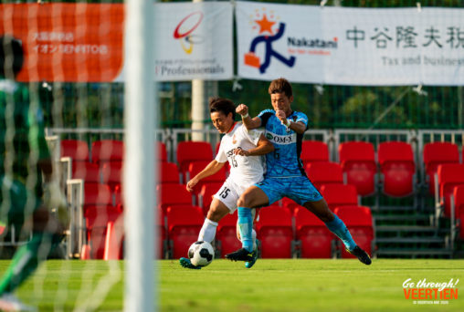 試合が始まり立ち上がりから何度かゴール前に迫られる場面を迎えるが、守備陣が焦ることなく冷静に対処し決定機を与えない。 FC大阪のシュートを前半3本に抑えた固い守備は健在。スペースを使った攻撃を得意とするFC大阪に長いボールを蹴らせない早め早めの対応でペースを掴む。