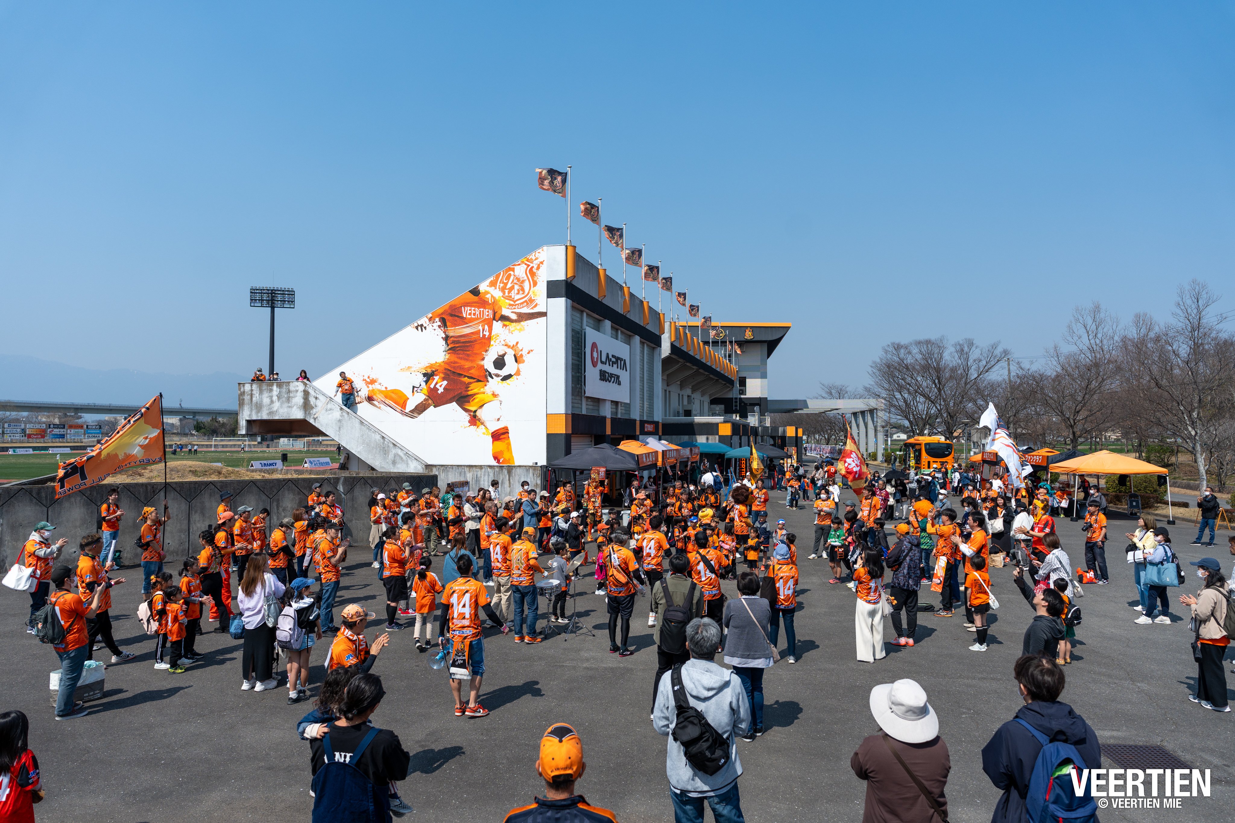 開幕から2試合を終え1勝1分で迎えた今季2度目のホームゲーム。2試合とも決して簡単な試合ではなかったものの、例年以上に期待が持てる試合運びとチームの雰囲気、ヴィアティン三重を応援する誰もがそんな印象をもって迎えた第3節のミネベアミツミFC戦。一気に春が訪れ20℃を超える陽気も相まって、試合前のスタジアムには大きな期待感に溢れていた。目移りするほどに充実したスタグルを巡るサポーター、新グッズを手に入れるべくグッズブーズに列を作るサポーター、コスプレをして働くクルマの前で記念撮影をするサポーターと、晴れの日のスタジアムにはハッピーが溢れる。そんなハッピーで1日を終えるためにはチームの勝利が欠かせない。