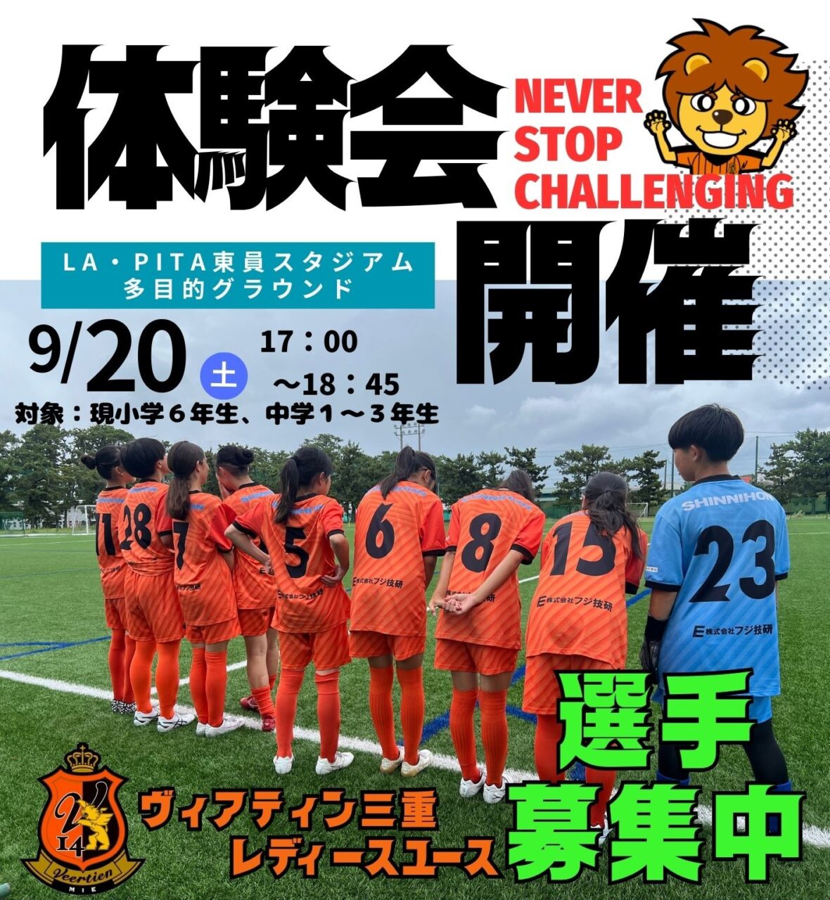 ヴィアティン三重レディースユースの体験練習会を開催します。