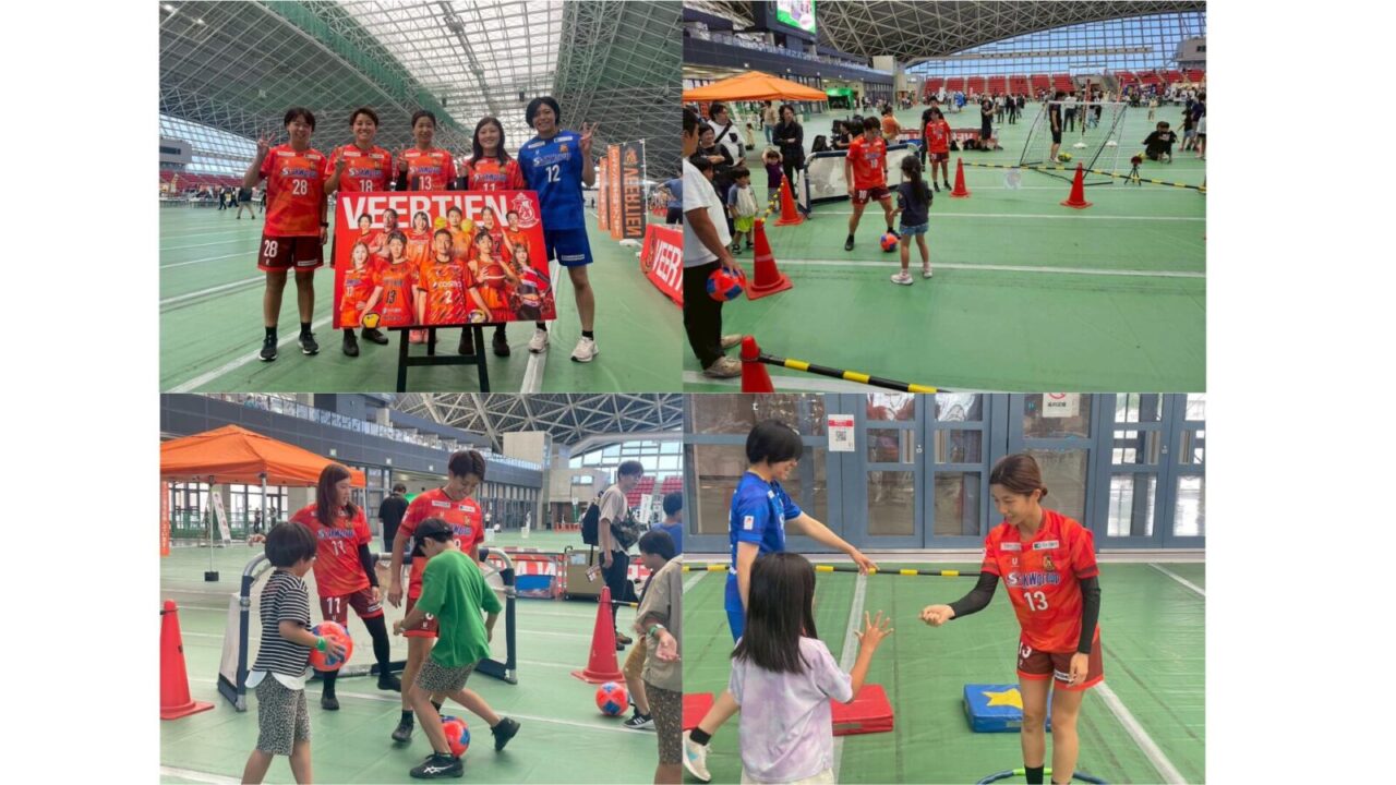 もちろん女子選手も参加させていただき、たくさんの子どもたちと触れ合いながらイベントを一緒に盛り上げました。(平野鈴空選手、藤崎愛乃選手、辻明日香選手、久永望生選手、古寺未佳選手)
