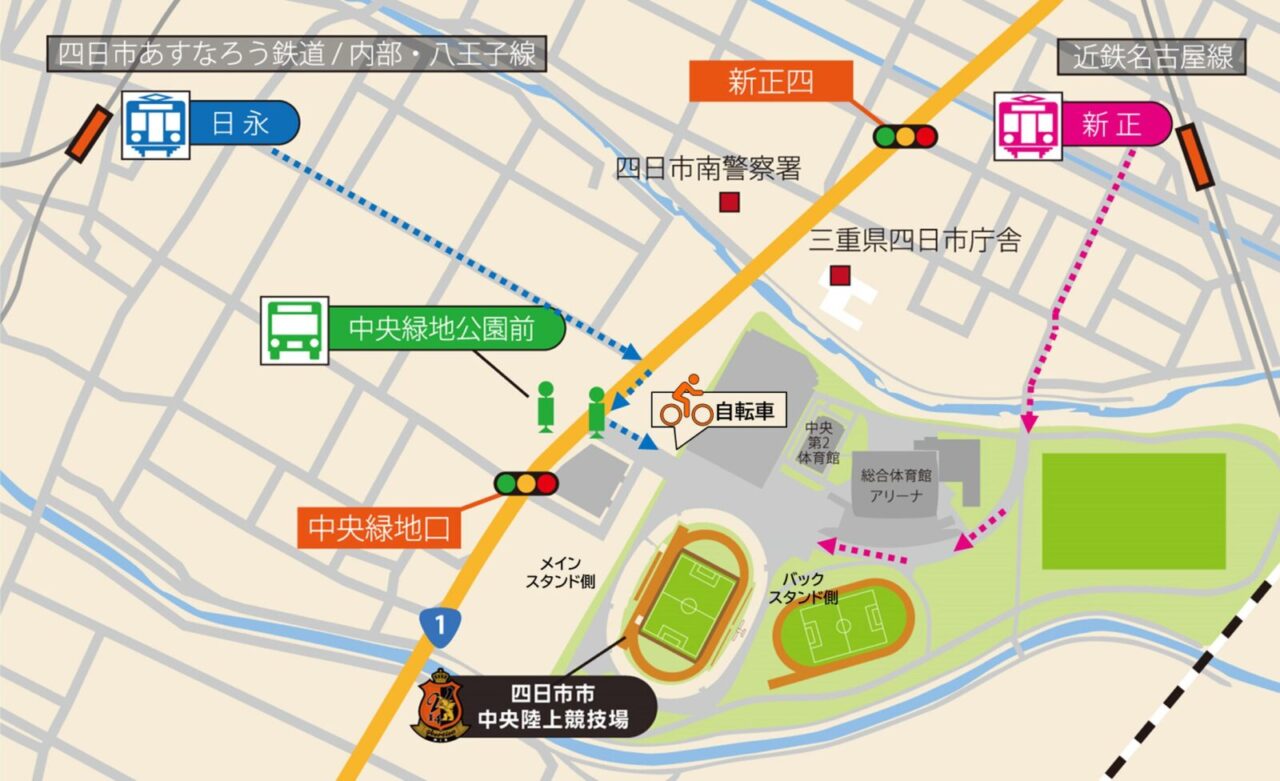 例)「近鉄四日市」→「中央緑地公園前(四日市)」