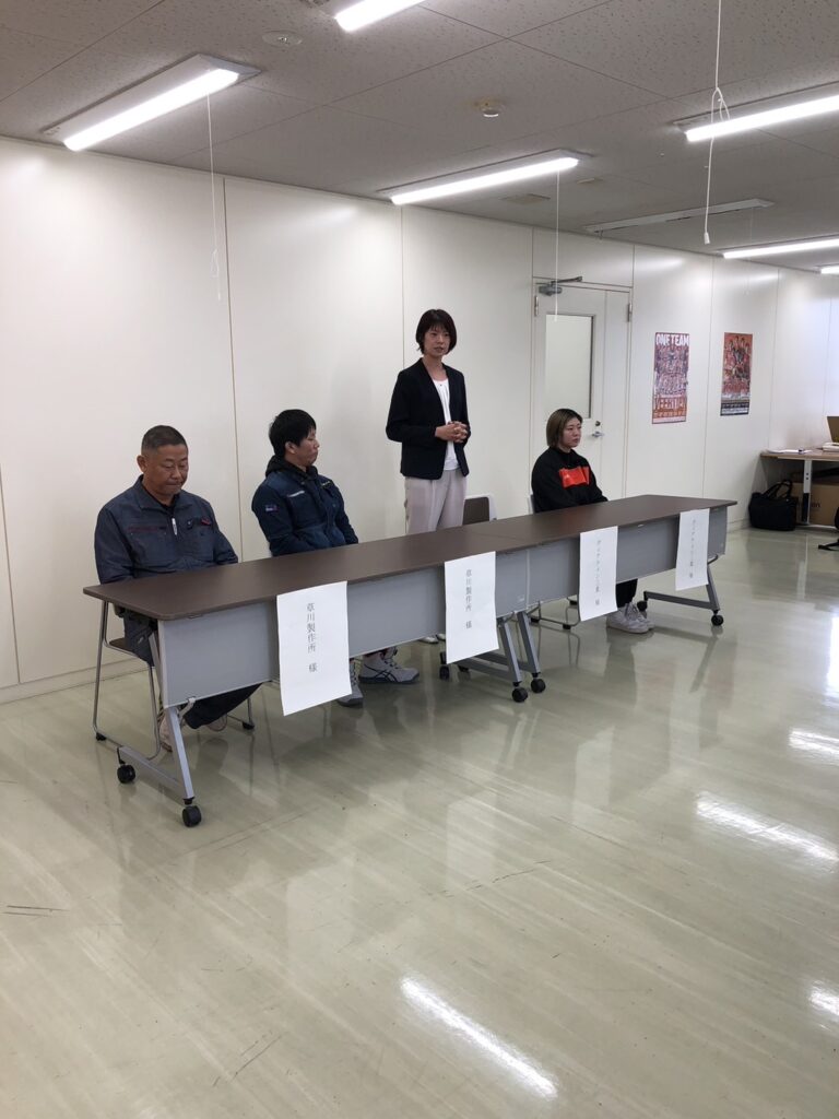 ボールを寄贈した草川製作所、草川博之専務取締役からは「地域のスポーツがこれを機に活発になれば嬉しい」とコメント。
