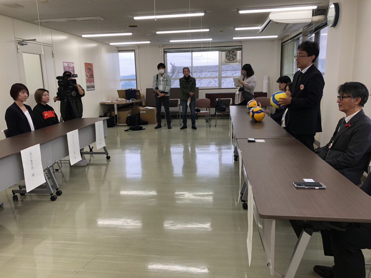 それに伴い、10月31日(金)、亀山市役所にて、ボール寄贈セレモニーを実施いたしました。