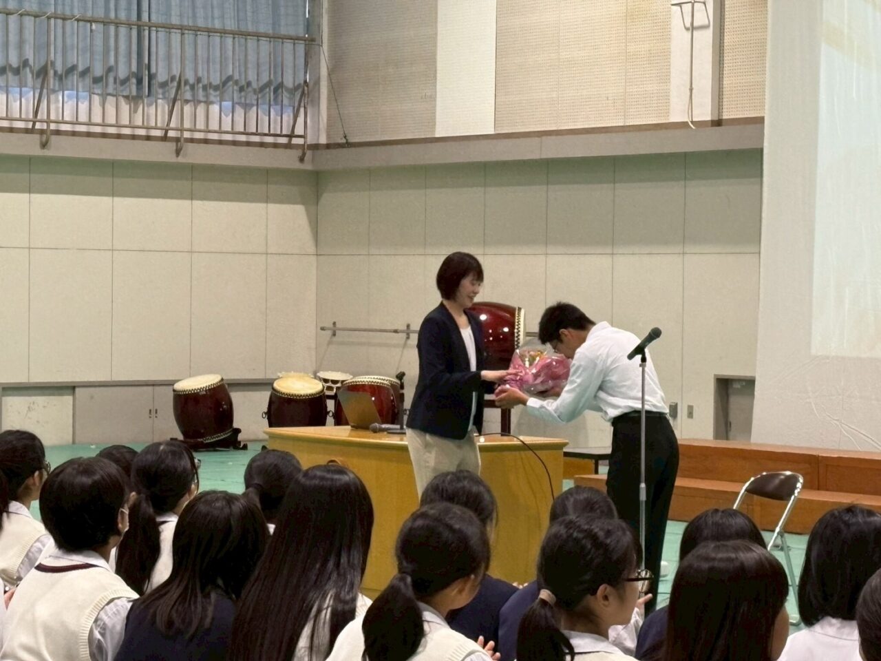11月7日(金)に、四日市市立西陵中学校の文化祭にて、宮下遥が講演会を行いました。