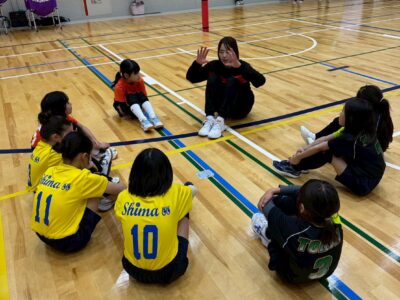志摩市バレーボール協会主催で、午前は小学生の選手、午後は中学生の選手を対象にバレーボール教室を行いました。