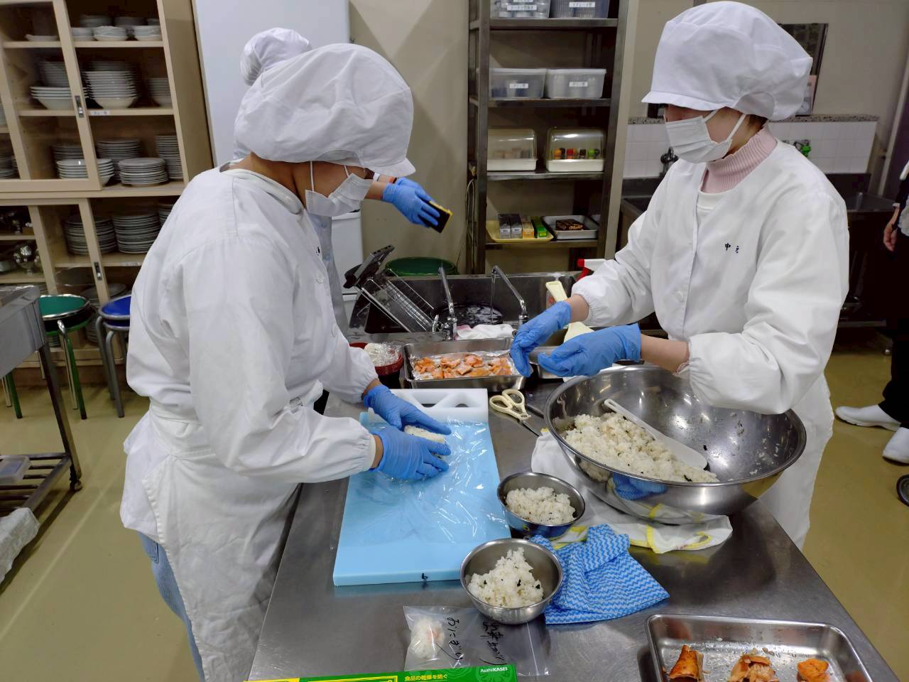 練習が始まる前に、糖質・たんぱく質の補給を目的に、鮭やゴマの入ったスポーツ補食おにぎりを練習前に摂取することができています。