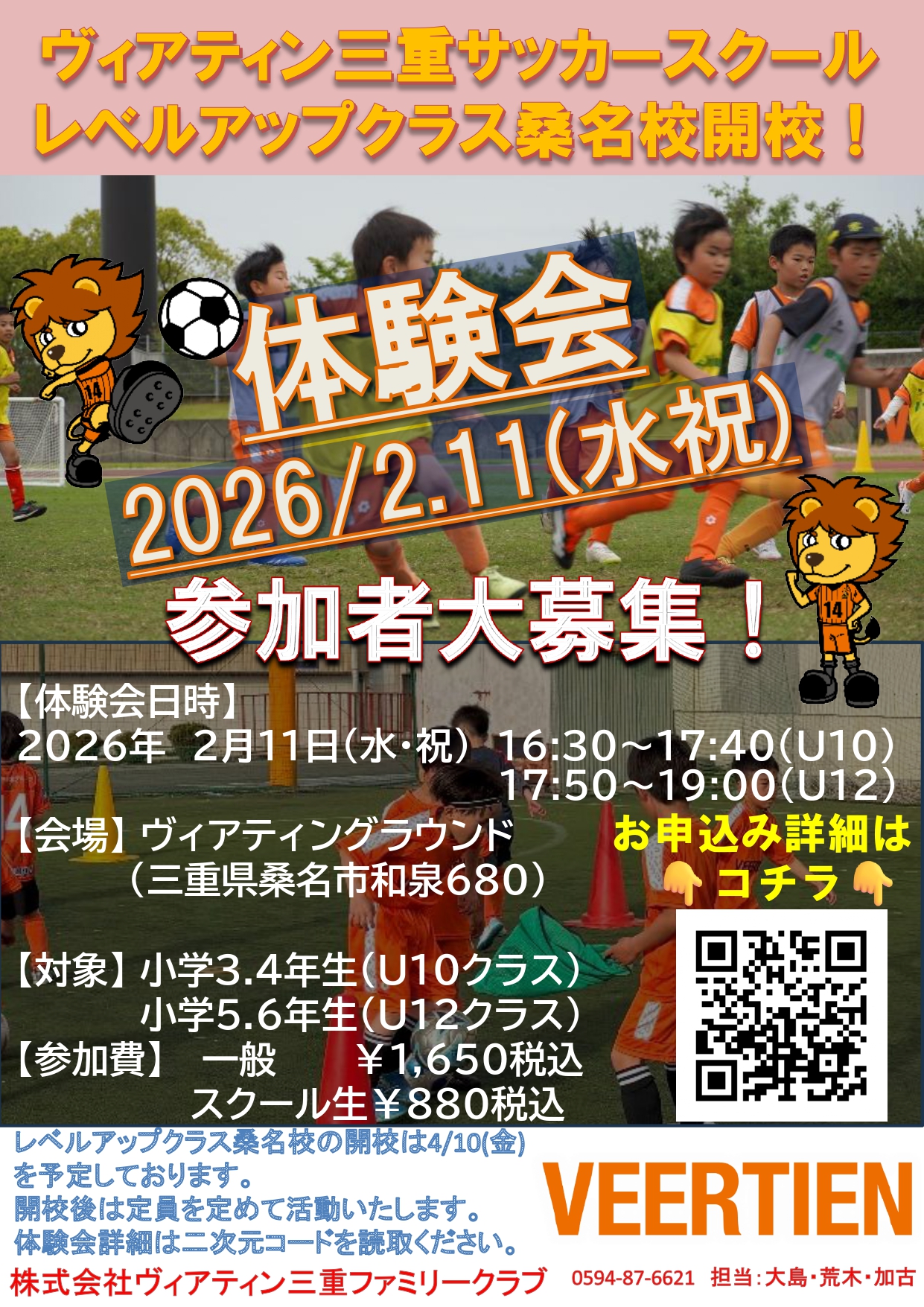 ヴィアティン三重サッカースクール、レベルアップクラス桑名校開校!2/11(水祝)体験会参加者募集のお知らせ!