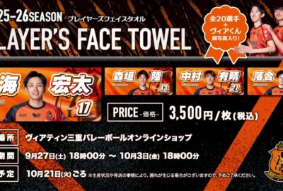 NEWSファンクラブ/グッズ一覧 ファンクラブ/グッズ 2025年09月27日 【グッズ情報】2025-26 プレイヤーズフェイスタオル販売 (受注生産) ファンクラブ/グッズ 2025年09月01日 【イベント報告】ファミリエ限定練習見学を行いました ファンクラブ/グッズ 2025年08月30日 【お知らせ】2025-26シーズン ユニフォームデザインおよび、オーセンティックユニフォーム販売について ファンクラブ/グッズ 2025年08月25日 2025-26シーズン ファンクラブ「FAMILIE」について ファンクラブ/グッズ 2025年08月14日 【お知らせ】オンラインショップについて ファンクラブ/グッズ 2025年05月29日 2024-25シーズンサンクスオークション 開催! ファンクラブ/グッズ 2025年03月23日 【グッズ情報】西地区優勝記念グッズ 販売!! ファンクラブ/グッズ 2025年02月20日 【亀山大会ゴールド会員先行販売開始日変更について】 ファンクラブ/グッズ 2025年02月14日 【新グッズ情報】ネイルサロンM5様コラボ ヴィアティンネイルシール ファンクラブ/グッズ 2024年12月30日 ヴィアティン三重ユニフォームオークション 開催! ファンクラブ/グッズ 2024年12月26日 【新グッズ情報】トレーディングカード2024-25 ファンクラブ/グッズ 2024年11月20日 【お知らせ】新グッズ情報!! 1 / 41234»