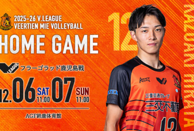 NEWSホームゲームイベント情報一覧 トップチーム ホームゲームイベント情報 2025年11月17日 New! 市民無料招待 まとめ ホームゲームイベント情報 2025年11月11日 【ホームゲーム情報】12月6日・7日 @AGF鈴鹿体育館 ホームゲームイベント情報 2025年11月01日 【お知らせ】12月6日・7日 ホームゲームへ鈴鹿市民・亀山市民の皆様を無料招待! ホームゲームイベント情報 2025年10月19日 【お知らせ】11月29日・30日 ホームゲームへ四日市市民の皆様を無料招待! ホームゲームイベント情報 2025年11月05日 【ホームゲーム情報】11月29日・30日 @相好アリーナ四日市(四日市市総合体育館) ホームゲームイベント情報 2025年10月28日 【ホームゲーム情報】11月15日・16日 @久居体育館 ホームゲームイベント情報 2025年10月18日 【お知らせ】11月15日・16日 ホームゲームへ津市民の皆様を無料招待! ホームゲームイベント情報 2025年10月14日 【ホームゲーム情報】会場図、チケット販売等 トップチーム ホームゲームイベント情報 2025年02月26日 【ホームゲーム情報】 3月15日・16日 @亀山西野公園体育館 トップチーム ホームゲームイベント情報 2025年02月12日 【ホームゲーム情報】四日市大会 3月1日・2日 トップチーム ホームゲームイベント情報 2024年12月11日 【ホームゲーム情報】スポーツの杜鈴鹿大会 1月4日・5日 トップチーム ホームゲームイベント情報 2024年12月04日 【ホームゲーム情報】スポーツの杜鈴鹿大会 12月28日・29日 1 / 512345»