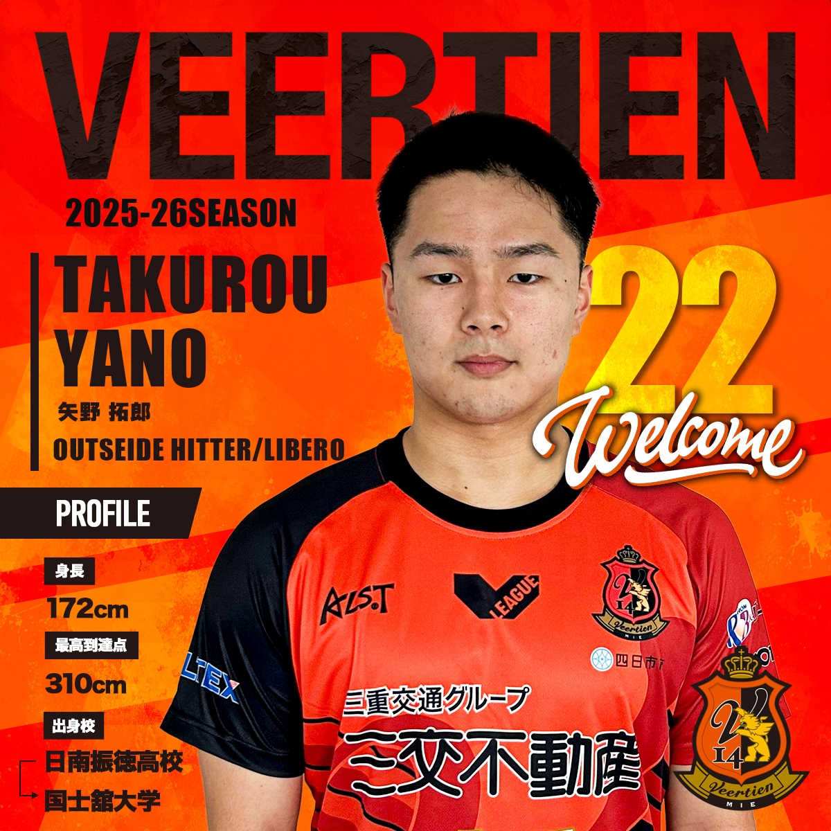 ヴィアティン三重のチーム関係者の皆様、そしてファンの皆様、初めまして!この度入団いたしました矢野拓郎です!このチームの一員としてプレーできることを心から嬉しく思います。新人としてチームの勝利に貢献できるよう全身全霊で取り組みます。先輩方から多くを学び、誰からも信頼される選手を目指して日々努力を重ねていきます。情熱を胸に、ヴィアティン三重の一員として全力で戦います。応援よろしくお願いいたします!