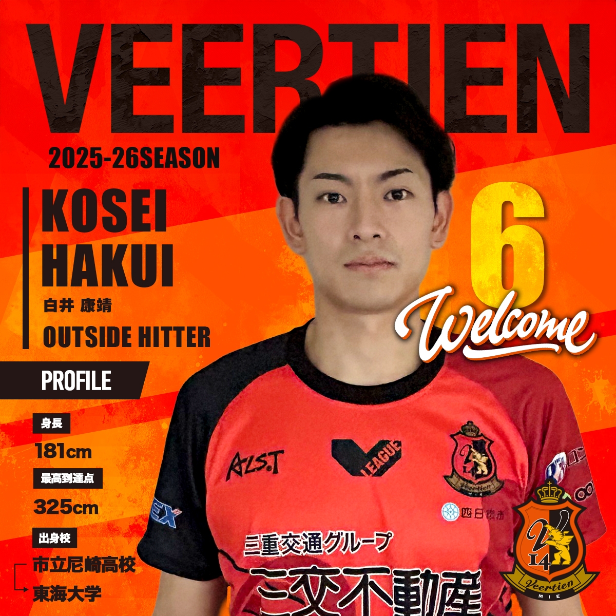 この度、ヴィアティン三重バレーボールに入団させて頂くことになりました、東海大学の白井康靖です。ヴィアティン三重のチームの一員として、新たな環境でバレーボールができることを嬉しく思います。1年目からチームの勝利に貢献できるよう精一杯頑張りますので、応援の程よろしくお願いいたします。