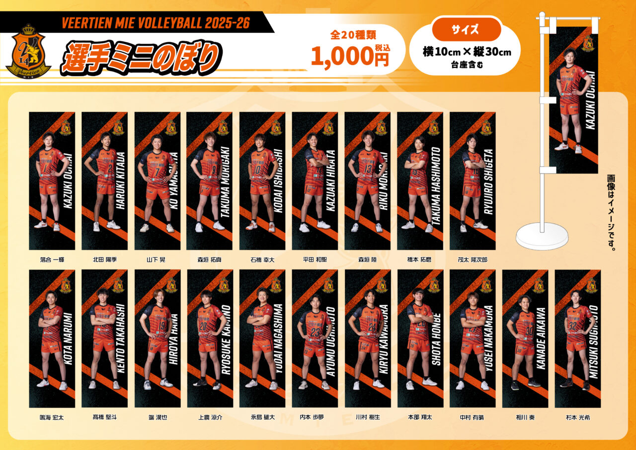 今シーズン会場に掲出しております選手幕のデザインそのままでミニのぼりとして登場!