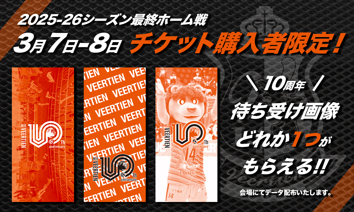 ホームゲーム最終戦に、三重県在住・在勤・在学の方を無料で招待いたします!今シーズン三重県での最終戦を県民の皆さんの応援で支えてください!
