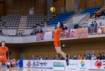 セッターの中村選手とは大学時代からの仲間で、熟練されたコンビネーションを見せてくれました。